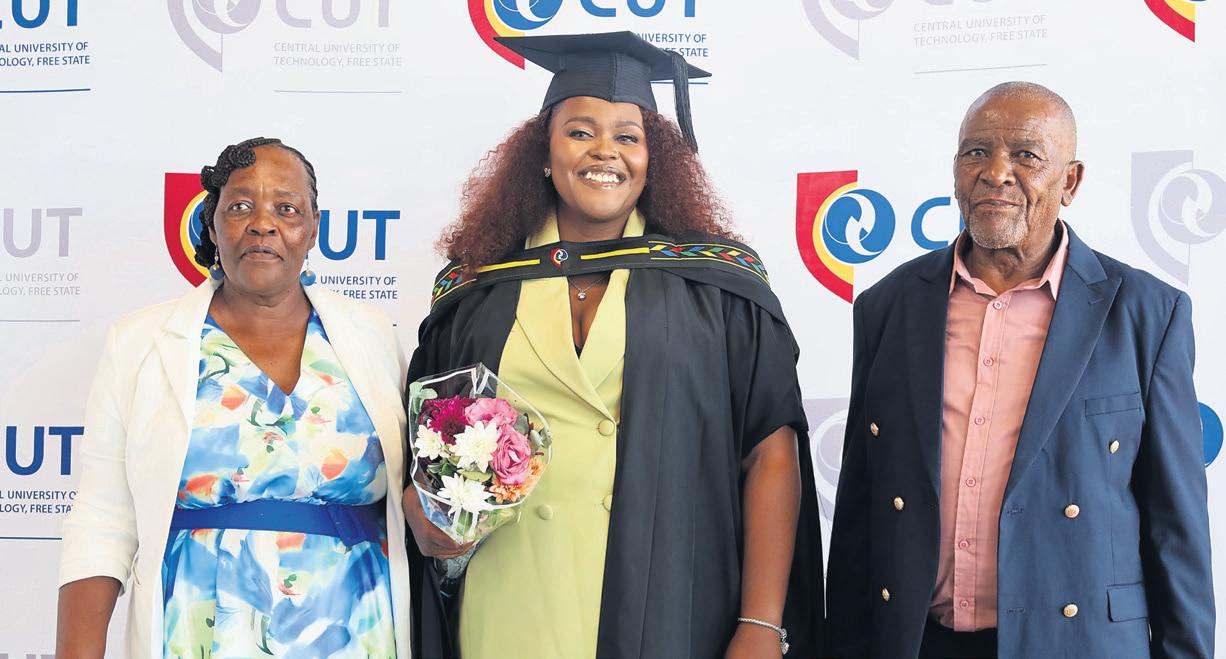 (Lebohang’s mother). The proud parents celebrate a special family milestone at the CUT 2026 Autumn Graduation.