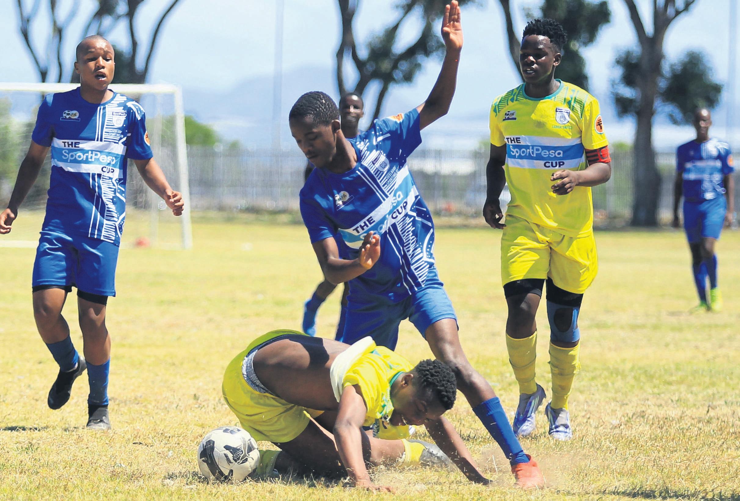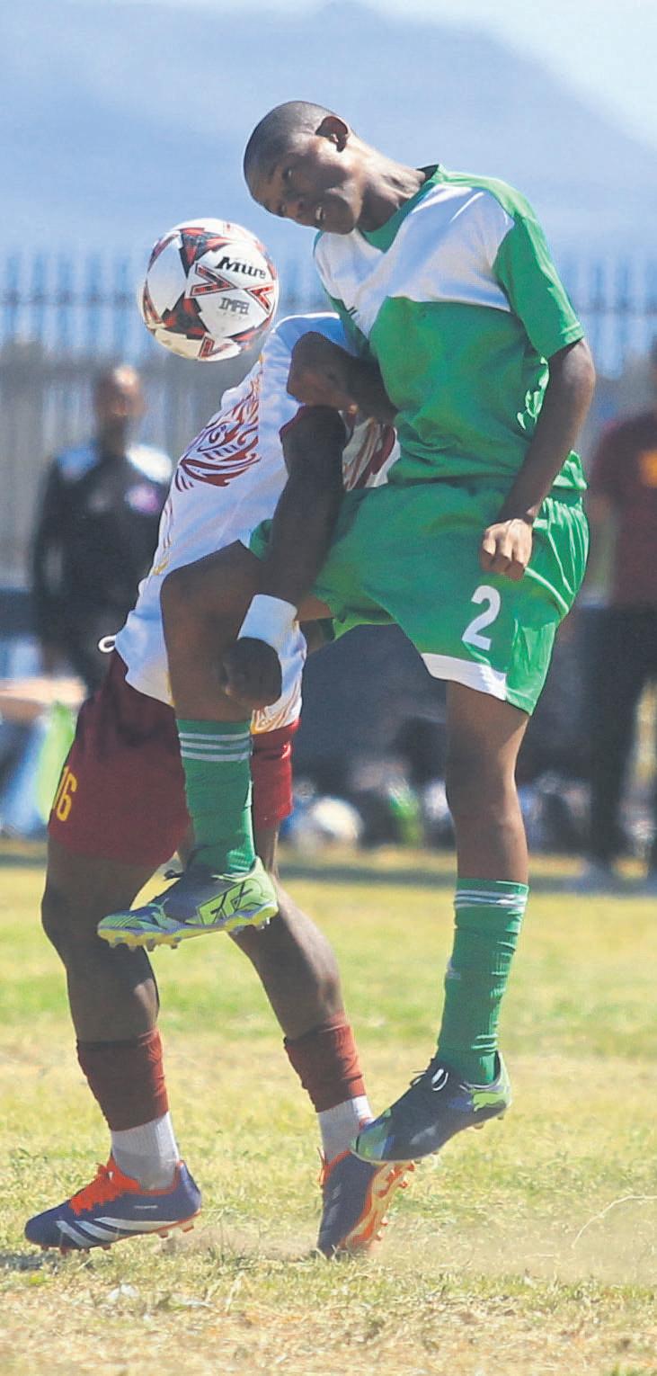 MbalentleMagidi of Geelbooi sportingclubfromSiteC stamped hisauthority in the midfieldbystoppingKholosa Manzebe of LangaUnitedinhis tracksduring the Bayhillu-19 Premier Cupplay-off match played at in Manenbergon Sunday 18 January.Geelbooi sportingclubwon 8-0 to book their placeinthe next round of the competition.