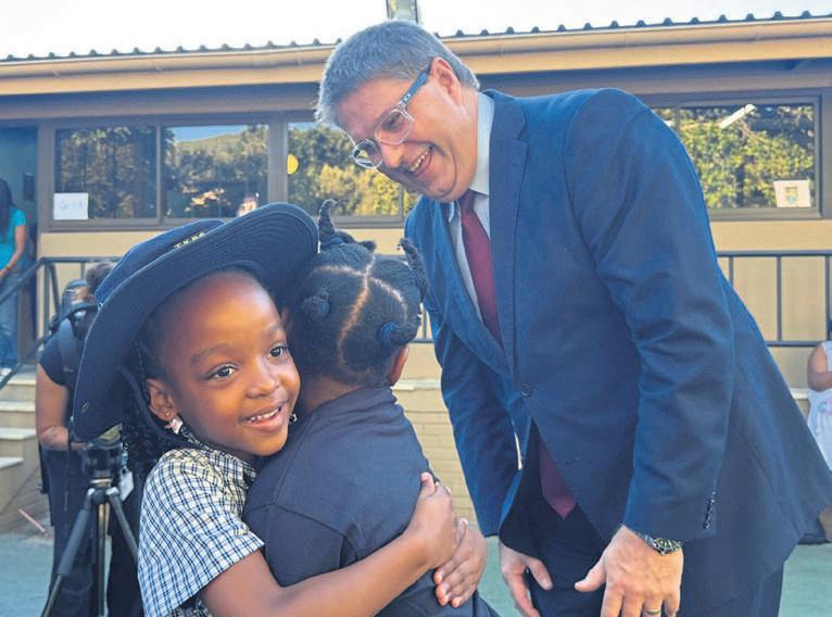 Western Cape Education MinisterDavid Maynier shares alight moment with learnersatTamboerskloofPrimary School. PHOTO:SUPPLIED
