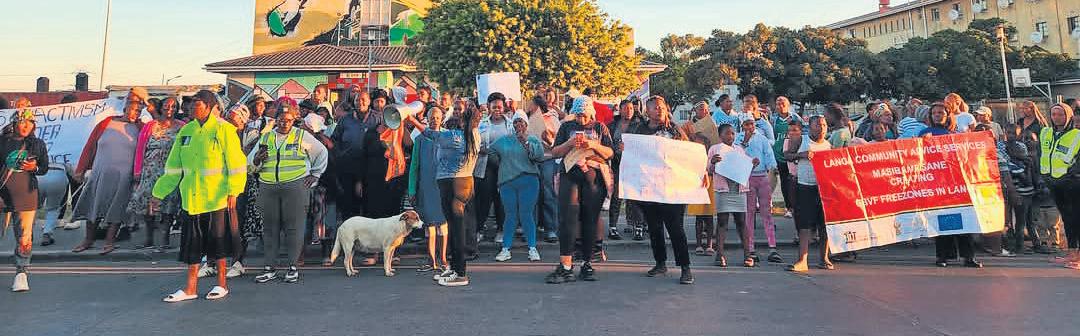 Some members of the Langa community carrying placards and banners picketing along King Langalibalele Drive in Langa against GBV.