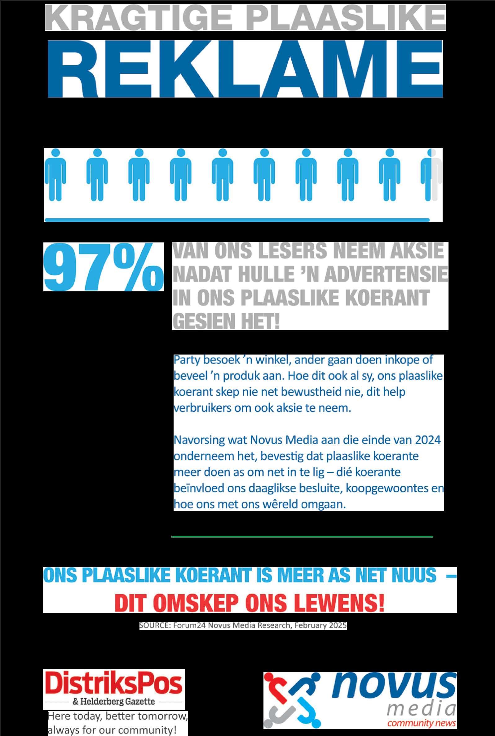 was om te leer en te verbeter, en dít was ons hoofdoel in 2025,” het Rooi-Horne gesê Rooi-Horne, wat reeds op die ouderdom van 18 die Verenigende kerk Eersterivier se koor afgerig het, het in 2007 die jongste wenner in die geskiedenis van die ATKV-Suidoosterfees se koorkompetisie geword toe hy die afdeling gewen het. Hy het hierdie prestasie in 2015 herhaal met The Church of the Resurrection-kerkkoor en weer 10 jaar later – in 2025 – met die VGK Macassar-kerkkoor Rooi-Horne ag homself ’n harde werker wat glo dat harde werk sukses bring. Hy het spesiale en ekstra oefeninge gereël om aan die koor se fyner tegnieke te werk en baie opofferings saam met elke koorlid gemaak. Rooi-Horne het hul dankbaarheid vir die ondersteuning van die gemeenskap, wat in hul trots en vreugde deel, uitgespreek. “Bly nederig; moet jouself nooit beter ag as ander nie. Loof die Here, bly mooi en respekteer mekaar altyd,” is die boodskap is wat hy uitstuur •Die koor bied op Sondag 16November om 14:00 ’n Kore-gala met top-kore en hoëprofielgaste in die Hoërskool Macassar-saal aan. Almal is welkom om die sanggeleentheid by te woon. Enige geldelike skenkings sal waardeer word. Verder werk die koor hard aan sy droom om in 2026 aan die Wêreldkoorspele in Nieu-Seeland deel te neem