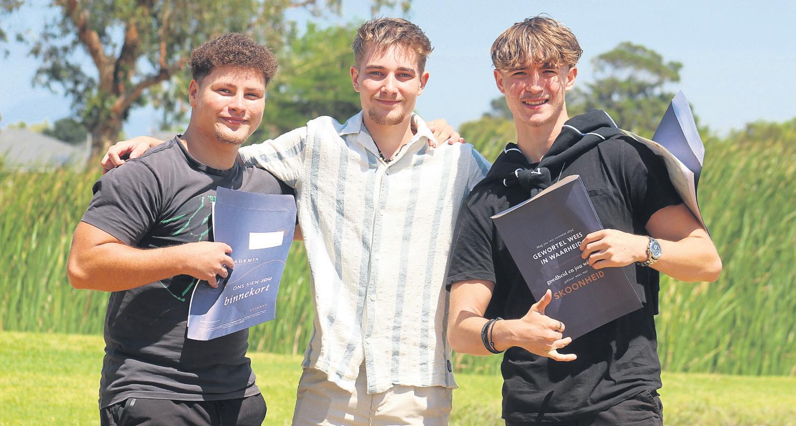 Success tastes sweet for Hoërskool Strand’s 2025 matric mates Matthew Geyer, Stiaan Swart and Malan Reyneke, who couldn’t be happier with their results as they plan their bright futures ahead. Photos: Jamey Gordon