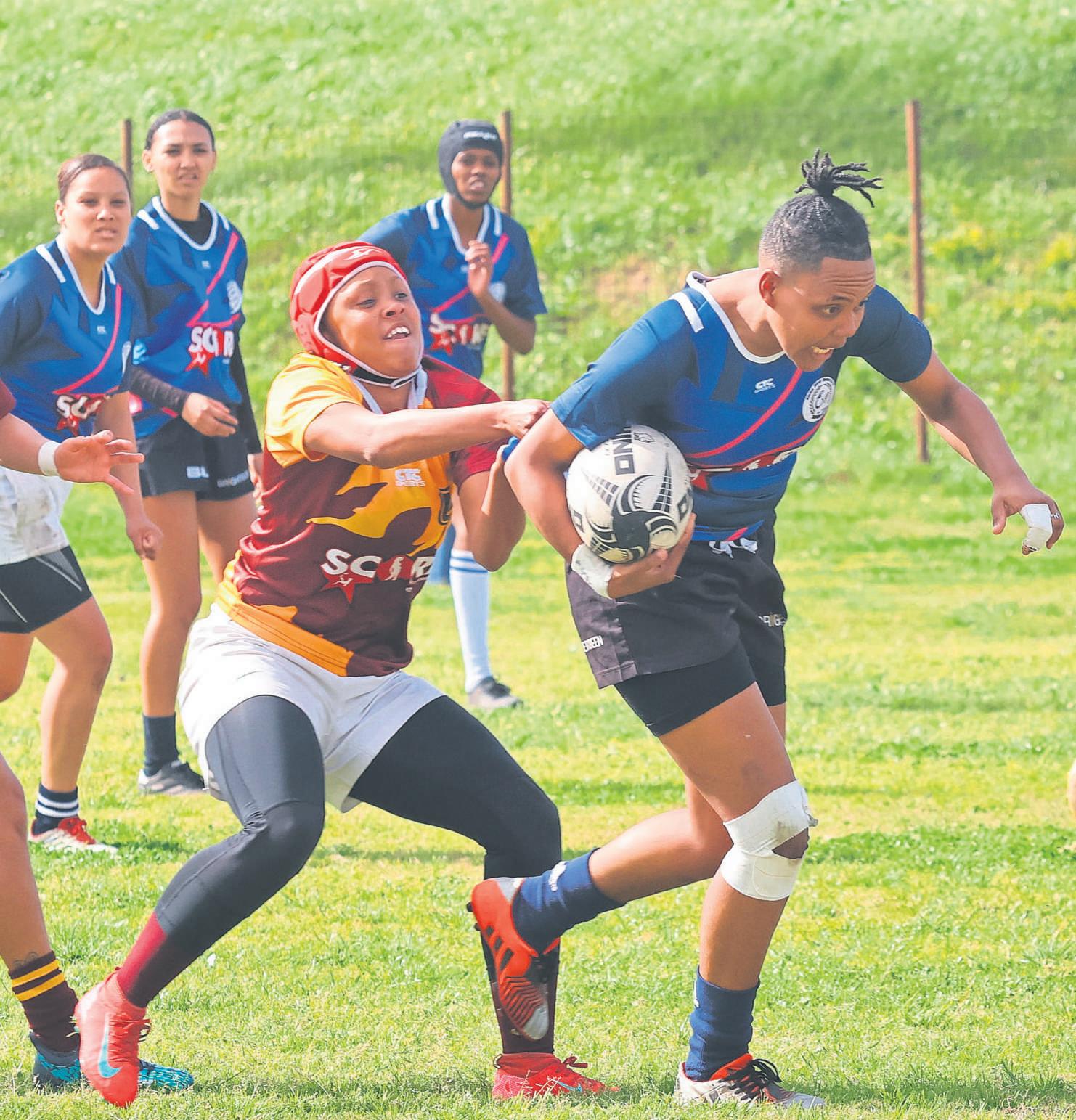 Genica Adams of St George’s Rugby Club gives her all in defence as she tries to stop Joy Klaase of Elsies River Rugby Club in her tracks during a match between the two teams at City Park in Athlone on Saturday (9 August) The encounter formed part of the Western Province Rugby Football Union Women’s Day Rugby Festival, which saw women’s teams from across the Cape lock horns in celebration of the special day. The Lulu Girls were victorious in the match, narrowly edging their Elsies counterparts by 22-19 The team has secured a spot in the play-offs of the Women’s League