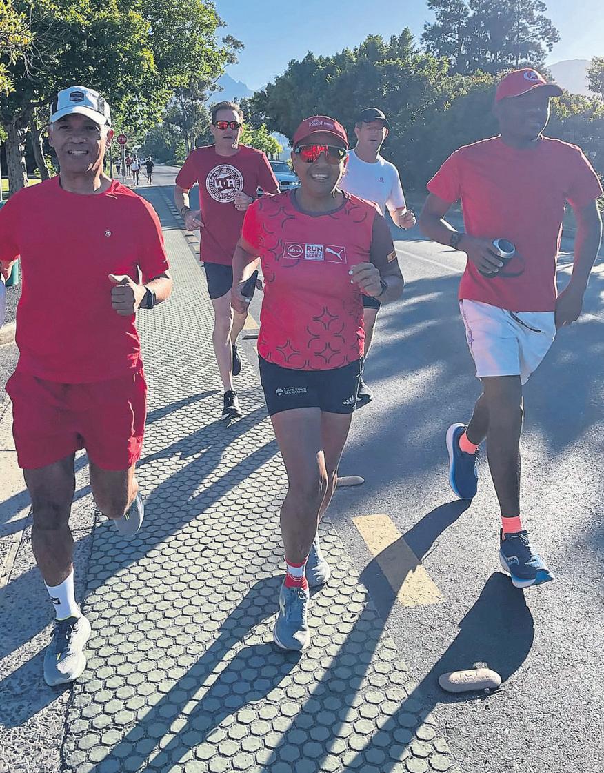 PHOTO LEFT: A determined Leon Reeding, Heath Meadows, Frances Abrahams, John Hodson and Leo Mahachi showed they care as they supported the stationery run.