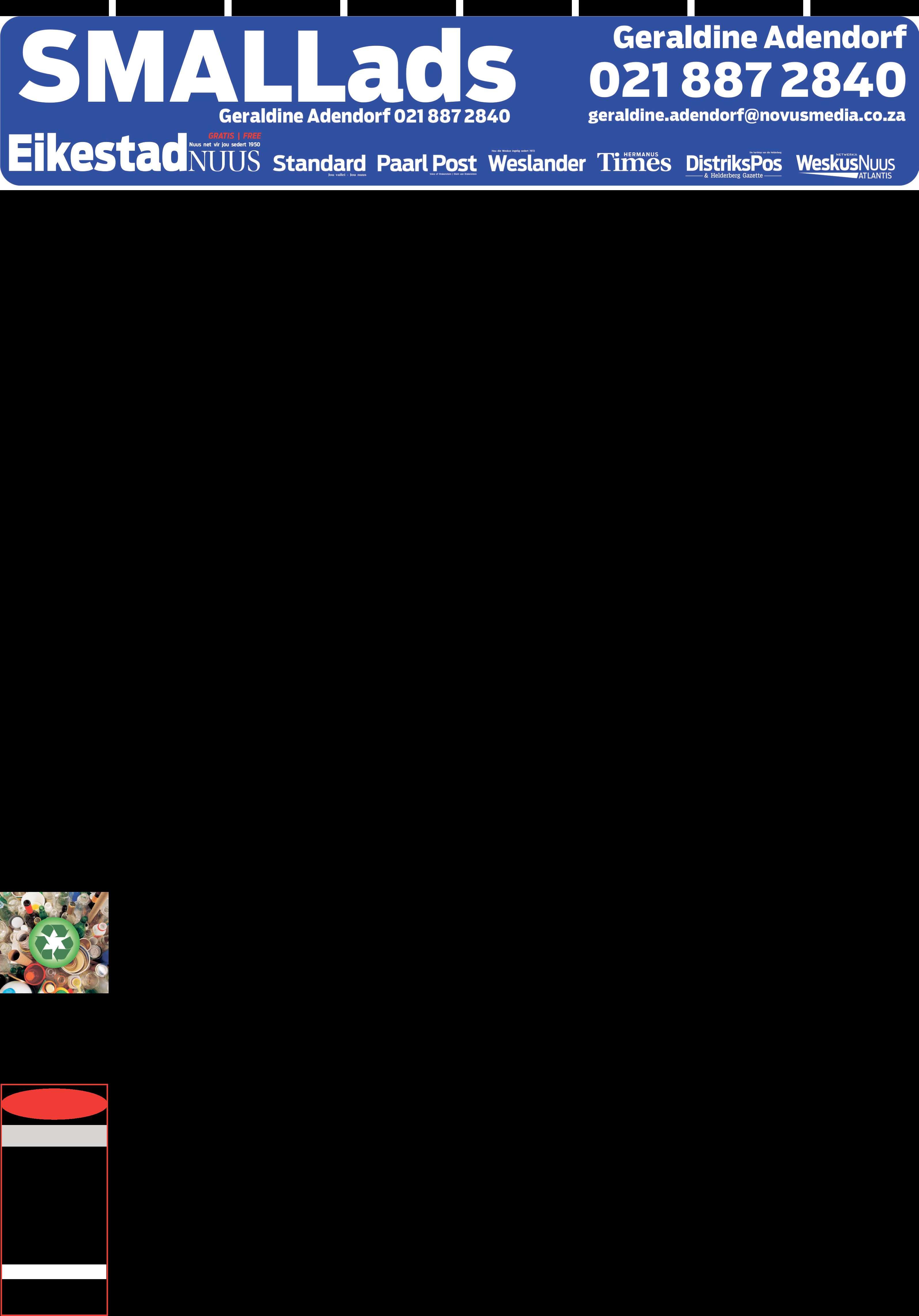 Bywoning van allekursusvergaderings isverpligtendomdie kort kursussuksesvoltekan voltooi,”sêdr. SiasMostert, e’Bosch-direksievoorsitter. Applikantemoet gemeenskapsgerigwees, al vier sessies kan bywoon,18jaar of ouer weesen’nkort CV saam met hul aansoek stuur Kontak die e’Bosch-kantoor teen of voor Vrydag 20 Maart perWhatsApp by 0615954085ofstuur e-posaan Belinda Foster by heritage.ebosch@ gmail.comom’naansoekvormtekry. Die aansoekvorm kanook aanlynin PDF-formaat op e’Boschsewebwerf, www.ebosch.co.za, afgelaai word