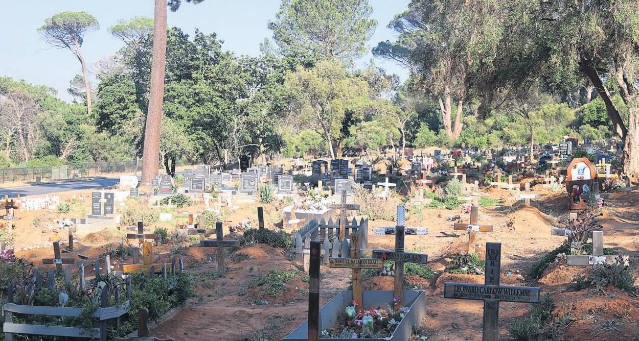 Só waarsku ’n werker by die begraafplaas in Onder-Papegaaiberg nadat PietdeKoker(77) die afgelope naweek vermoedelik vir sy selfoon naby se seun se graf doodgesteek is.