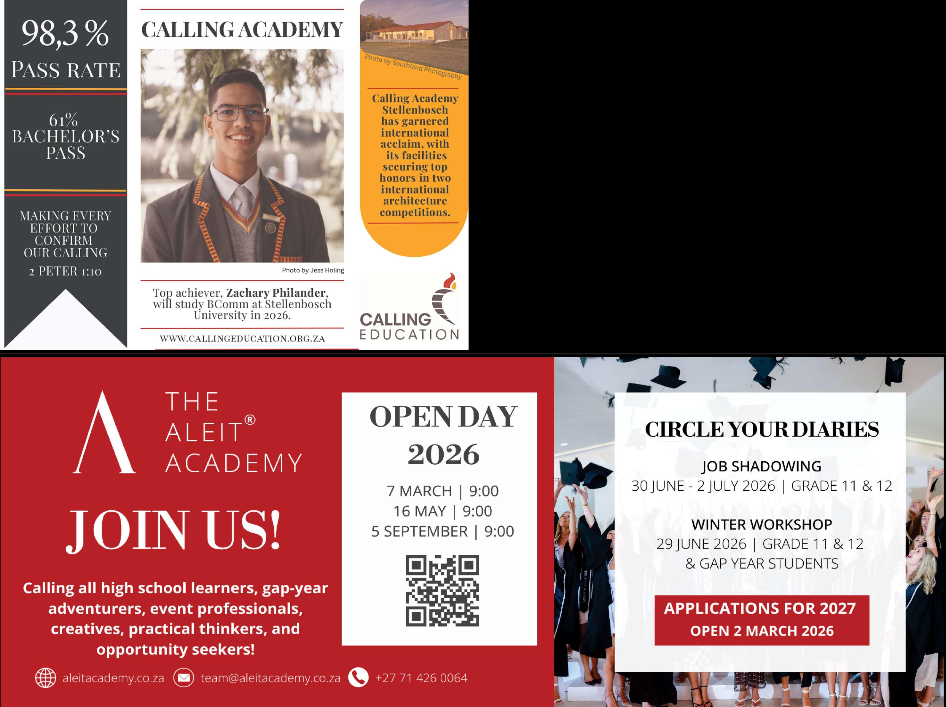 TheCalling Academy Stellenbosch has twoadditionalhighschools– onein Kroonstad (opened in 2022) and another in Paarl (opened last year).