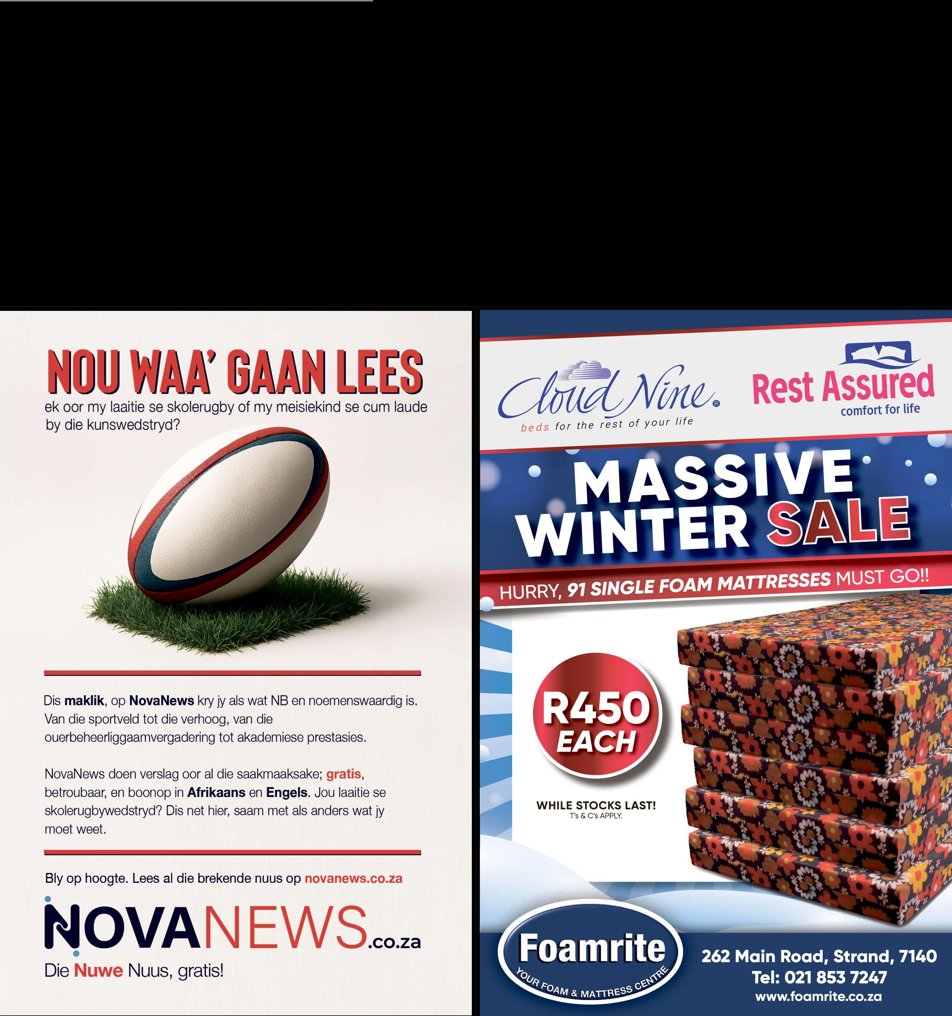 •DieStellenboschPubliekeBibliotekebyCloetesville;Franschhoek;Groendal; Kayamandi;Klapmuts;Idasvallei;PleinstraatStellenboschenPniel •DieKonsepStellenboschMunisipaleSoneringskemaVerordening2025kanafgelaai wordvandiemunisipalewebtuiste:https://stellenbosch.gov.za/zoning-schemes/ Kommentare,beswareenvoorleggingsmetbetrekkingtotdiewysigings,indienenige,moet deurdieondergetekendeontvangwordvoorofteen16h00op 8September2025.