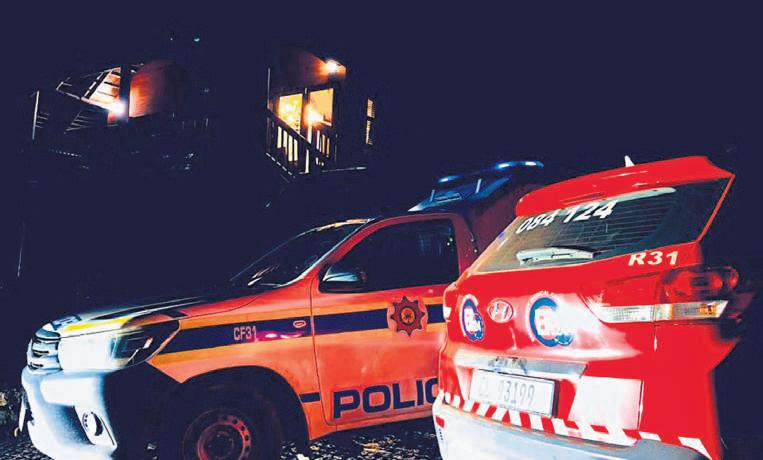 Die polisie en ambulansdienste van ER24 Saterdagnag op die toneel by die Franschhoek-gastehuis.