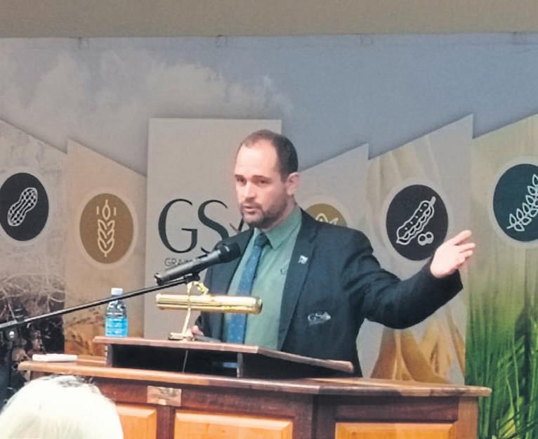 Dr. Tobias Doyer, die uitvoerende hoof van Graan SA en wat die geleentheid bygewoon het, hetin’npodsending saam met die ministervan landbou, John Steenhuisen, aan ledeverskynnadat Steenhuisen nie die vergaderingkon bywoonnie. Doyer het dit in hul gesprekvoeringpertinent aan die minister gesteldat die koringbedryf in die moeilikheid is.Steenhuisenhet lede versekerhydeel hul bekommernisse. Hy is dit eensdat die prosesvan tariefinstelling op ingevoerdekoring geoutomatiseer moet word. Doyer hetnaafloop van die uitsaai van die podsending herhaal dat Graan SA alles in sy vermoë doen om die kwessie rakende die afkondiging van die tarief op te los.
