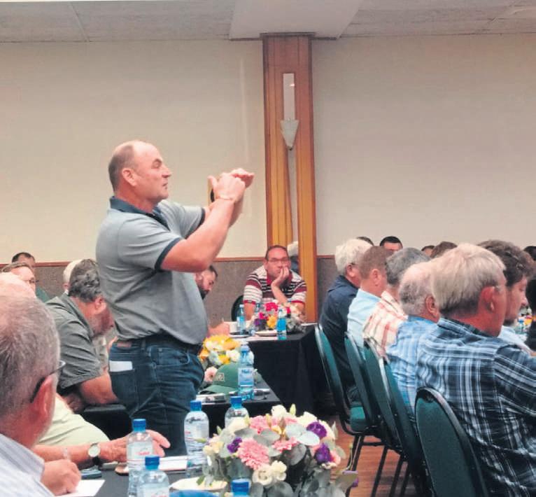 Nog ’n produsent het gevra dat Graan SA voortdurend sy vordering metledemoet deel. “Die goed moet aan die groot klok gehang word,”het ’n produsent geopper. Sommige produsente in die gehoorhet die vraag gevra of die manier waarop organisasies te werk gaan, nie dalk verkeerd is nie. “Dit is nie dat die boere nie GraanSA se heffingswil betaal nie –sommige kan dit net nie meer betaal nie. Maak werk van die probleme. Die tydverloopis te lank. Dinge sal noumoetbegin gebeur. Julle gaan in elk geval nie meer ledegeld krynie, want daar gaan nie meer boere oor wees nie,” het Truter de Kockvan Malmesbury gesê.