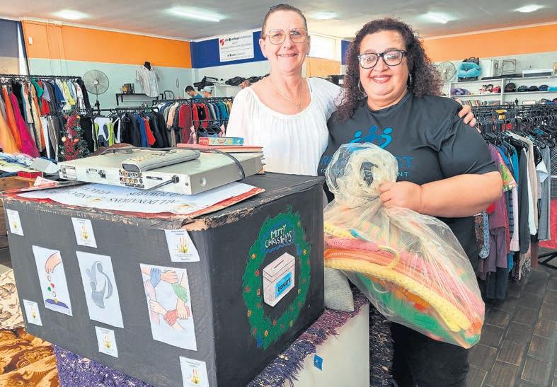 House of Hope in Caledon is ’n veilige hawe waar vroue en kinders wat aan gesins- of geslagsgebaseerde geweld blootgestel is, tydelike skuiling kry. Ons Winkel Caledon dra altyd die gemeenskap se belange op die hart en het ’n baie welkome Kersskenking aan House of Hope oorhandig. Retha Beukes van Ons Winkel Caledon oorhandig die skenking aan Edith Wilson, een van die huismoeders van House of Hope. Foto: Mitzi Buys