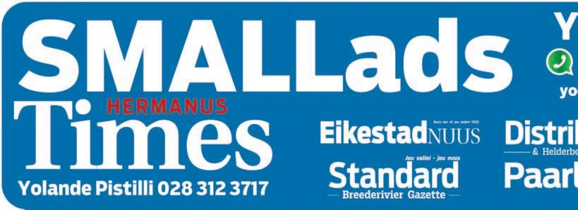 Hiermee word kennis gegeeingevolge Ar�kel34(1) vandieInsolvensiewet –no24van1936 geskied datdiebesigheid wa tbedryf word onderdienaamen styl vanJDTBurgers (Pty) Ltd, registrasie nommer2009/195877/23 van voornemeisomSteersHermanus, geleë te 137HoofStraat,Hermanus, 7200,enSteersWhaleCoastMall, geleë te ShopG23CWhaleCoastMall,Sandbaai,Hermanus, gehou indieen�teitJDTBurgers (Pty) Ltdmetal sy batesenhandelsaangewendheid verkoop word aan Micky's Food(Pty) Ltd, registrasienommer2016/501777/07ingang van1 Februarie2026.