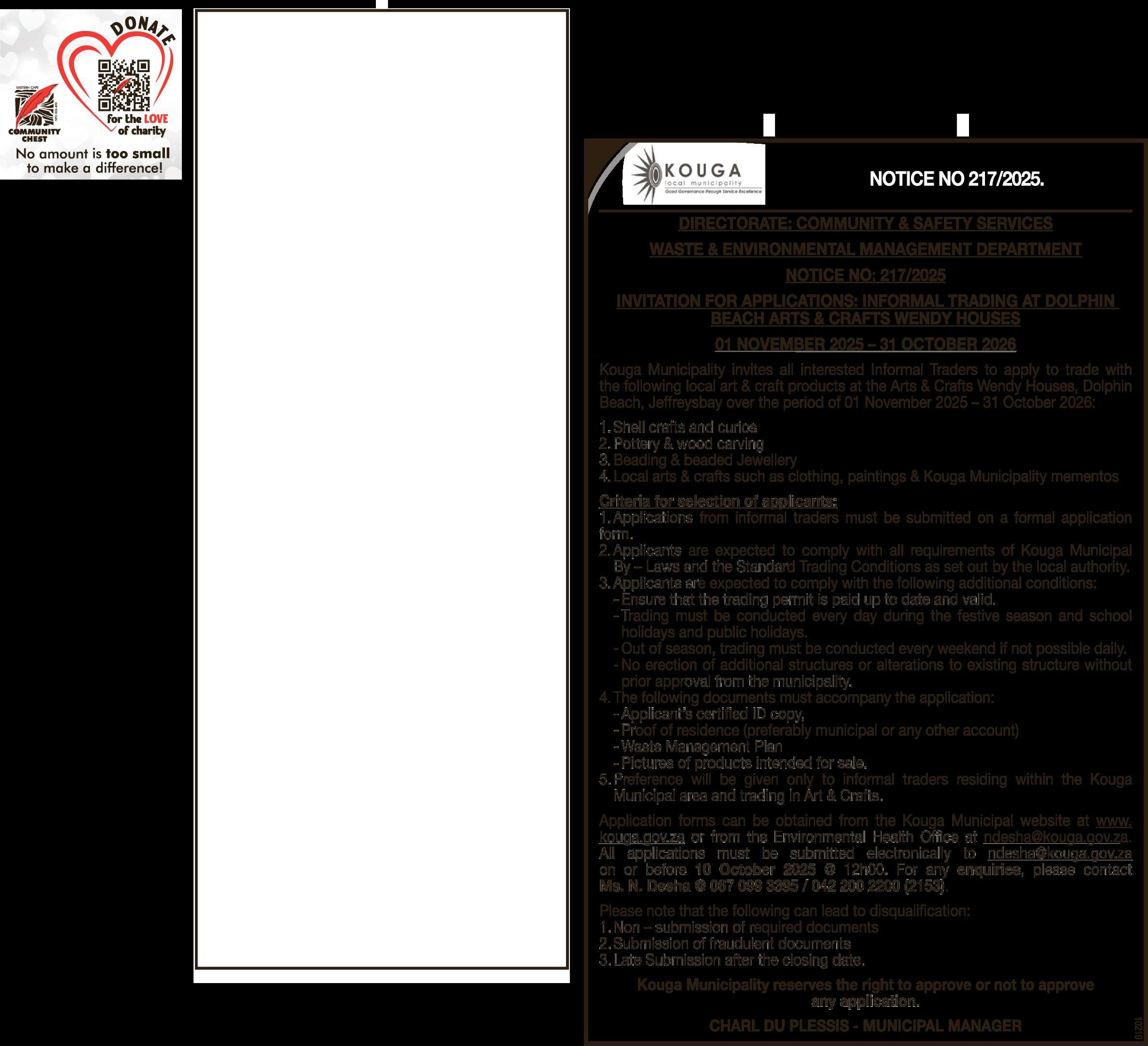 For more information contact Jayne Wright on 082 894 8521, or visit the SPCA in St Francis Street, Humansdorp to personally meet their beautiful animals