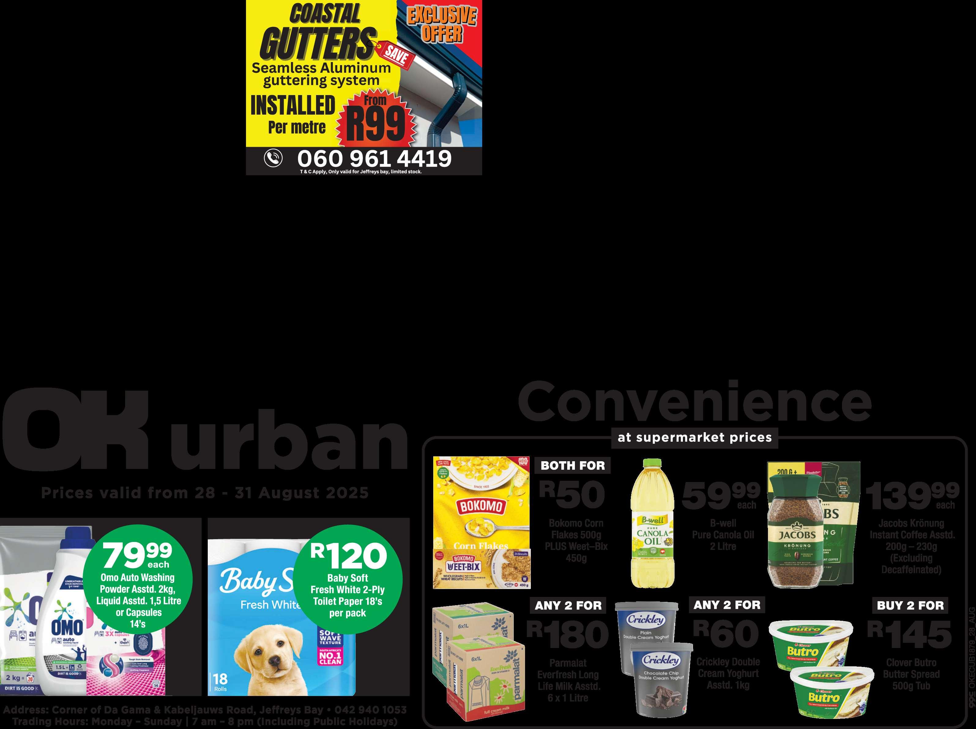Kouga SAGES CANSA Golf Day: Kouga SAGES hosts its annual golf day at Hankey Golf Club on Friday, 5 September To enter, contact Cecile at 082 410 3385 or Zana The cost is R300 per person, halfway included, and many prizes to be won Aston Market: The market will take place in the Community Hall at Aston Bay Beach on 6 September and then again on 1 November from 09:00 to 13:00 For more info, WhatsApp 082 828 1899 OnsTuisteBazaar:OnsTuistemaakgereed om op 6 September vanaf 08:00 'n bazaar