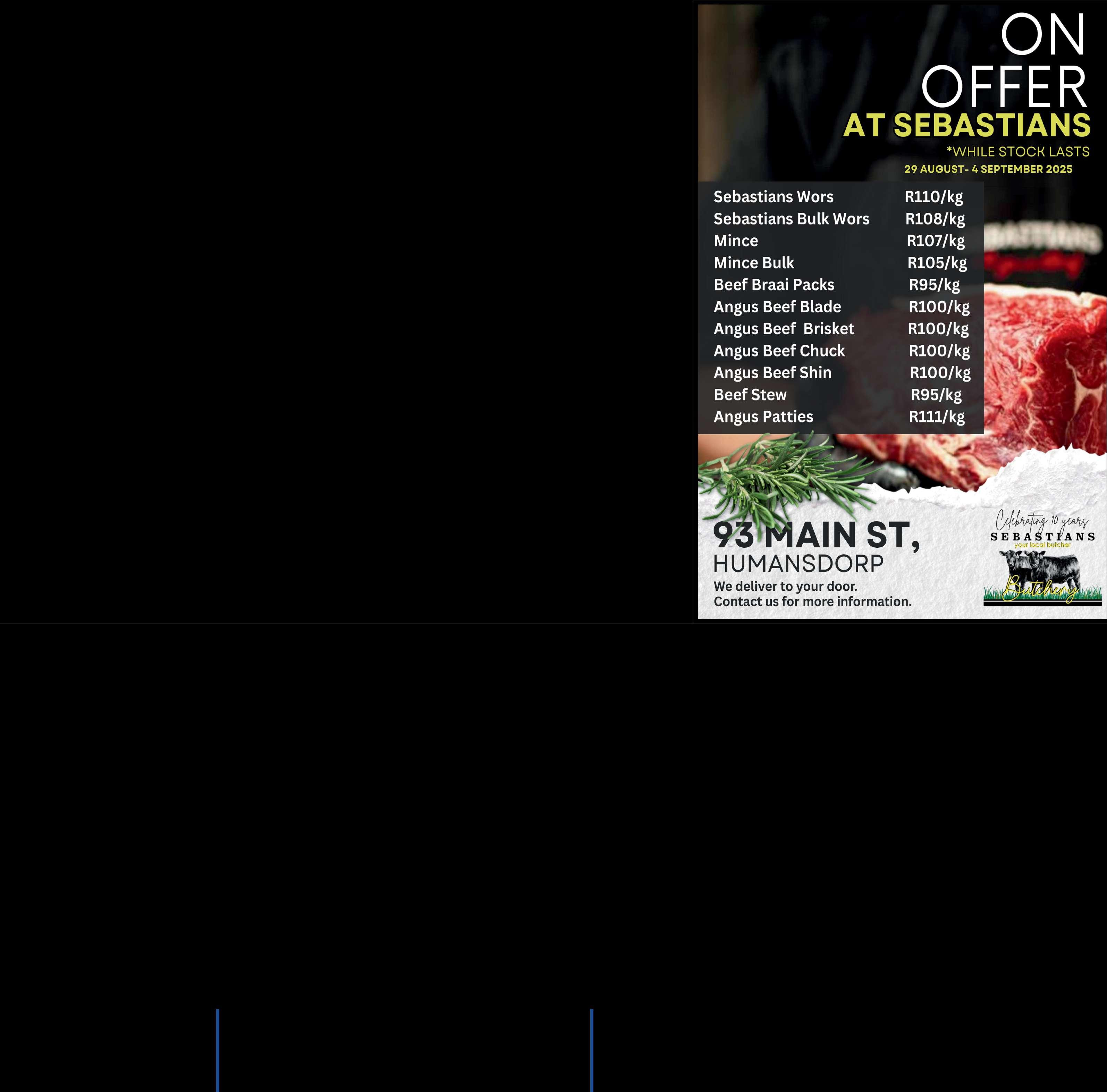 day and Sunday Enter the raffle for R10 Contact Christo at 083 703 0458 or Annemarie at 074 852 7877