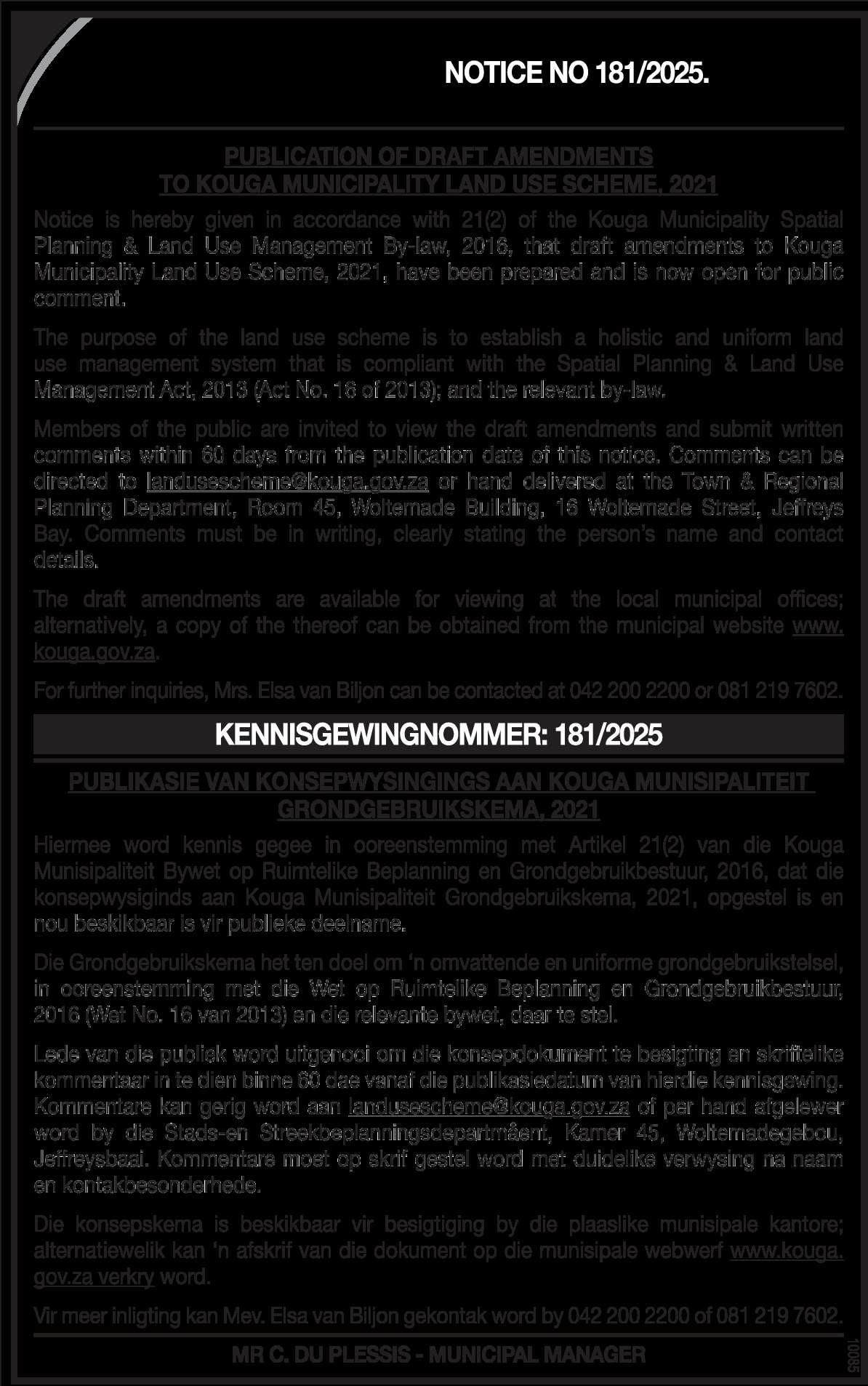 Residents can email their waste minimisation suggestions to environment@kouga gov za