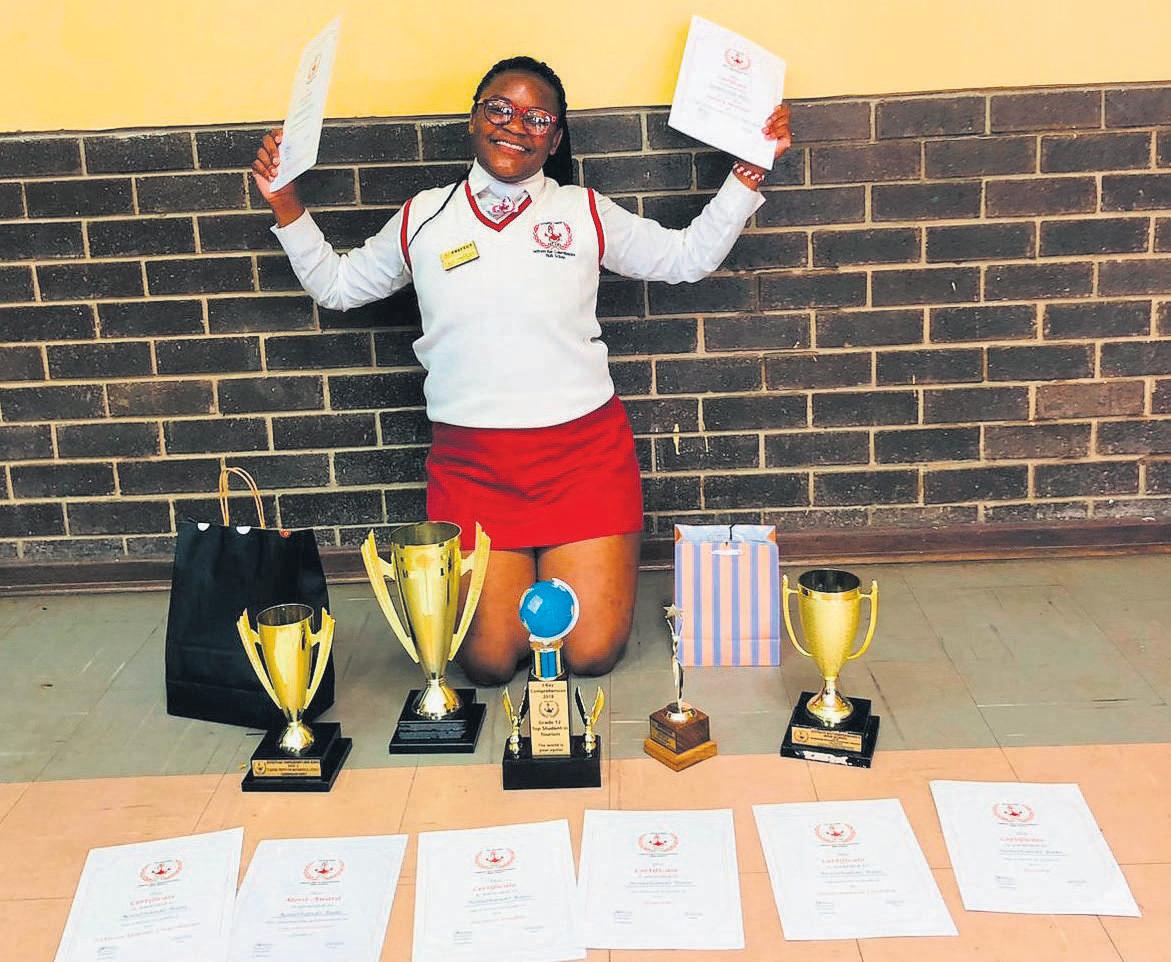 At the ceremony,Bans received acertificate indicating her secondposition in the Sarah BaartmanDistrict, along with atrophy,laptop, cellphone,suitcase and laptopbag
