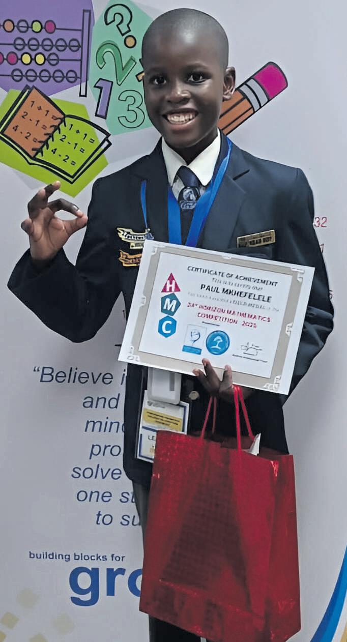 Grade 7 learner, Paul Mkhefelele from St Martin’s Private School in Mthatha, and his maths teacher, Dennis Manyora, demonstrating the awards he won from the Provincial Mental Maths Quiz Competition held in East London