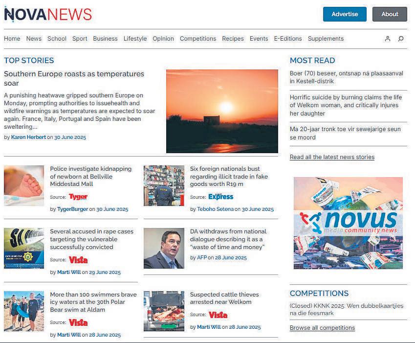 “NovaNews co za is a one-stop destination for trusted journalism, covering everything from breaking news and hyper-local community stories to school updates and sporting events The platform emphasises its commitment to delivering authentic, reliable news that matters on both local and national levels,” said Esme Smit, General Manager of Novus Media