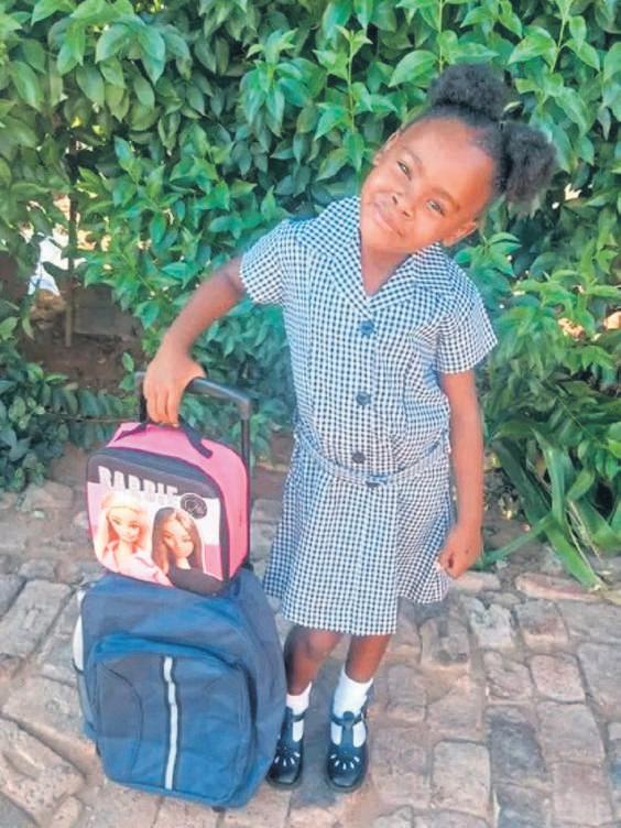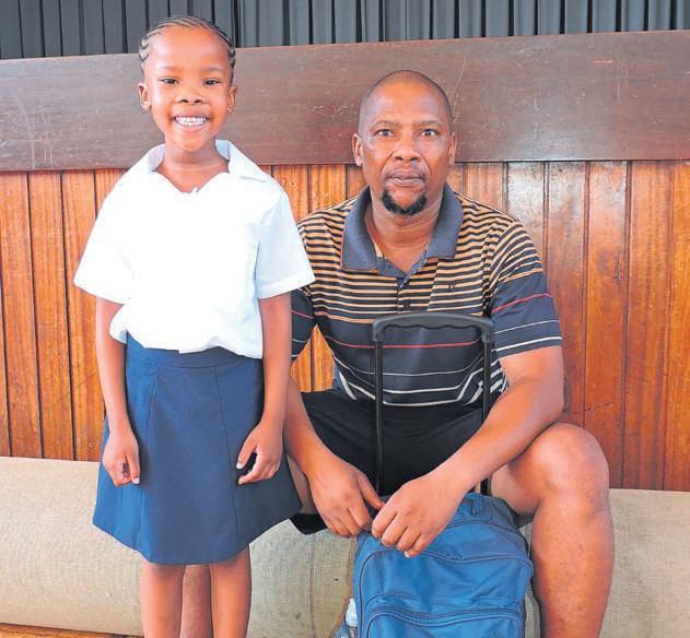 OmphileSebolai is joined by her father, Meshack Ramonnye,onher first school day at the Du Toitspan PrimarySchool in Kimberley.Omphilesaysshe wants to learnhow to count,and wants to becomeachefone day.Her sister is in Gr.3 in the same school.