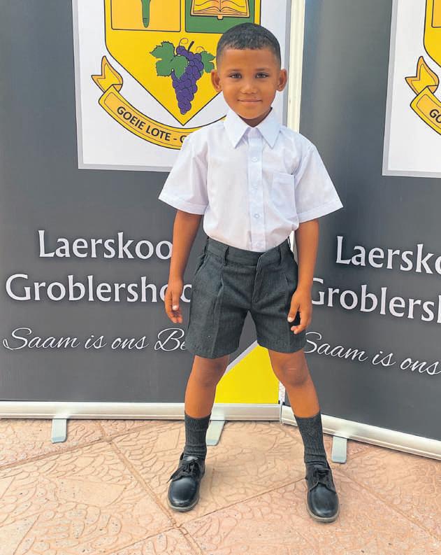 Uitgevatennetjies staan Chawandrevan Rooyengereed om sy skoolloopbaanaan dieLaerskool Groblershooptebegin FOTO: Verskaf