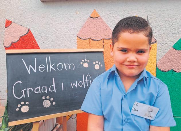 Ben Everts is ’n gr.1-leerder aan die Laerskool Kathu.Voor sy eersteskooldag het Ben eers sy troeteldier,Zord,gegroet Hy en Zord,’n“bearded dragon”,is byna onafskeidbaar.Ben wil baie graagrugby in die skool speel sodathygoed daarin kan wees – om eendag’nSpringbok-rugbyspeler te word.Hyhou blykbaar niksvan die grys skoolbroekenie,“want grys is ’n lelike kleur,”sê hy FOTO’s:Verskaf