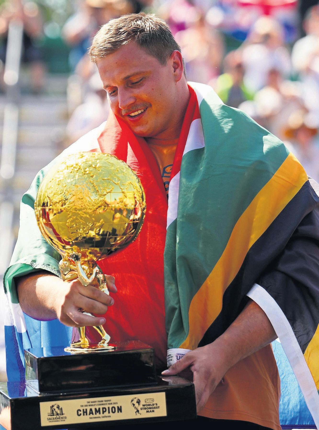 Nel, wat 191cm in sy sokkies staan, het dié titel op Sondag 18 Mei tydens vanjaar se SBD World’s Strongest Man-kompetisie in Sacramento in die Amerikaanse deelstaat Kalifornië verwerf.