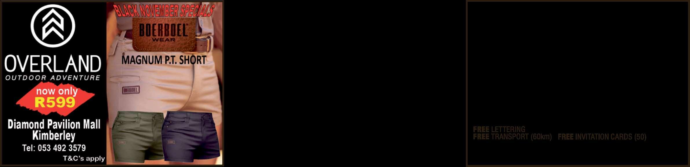Kimberley Markets presents its monthly Big Hole Market from 15:00 to 20:00 A variety of arts and crafts home made goods and more are sold at a variety of stalls Children’s entertainment is available Call Marais Tesner on 082 309 7885 for more information