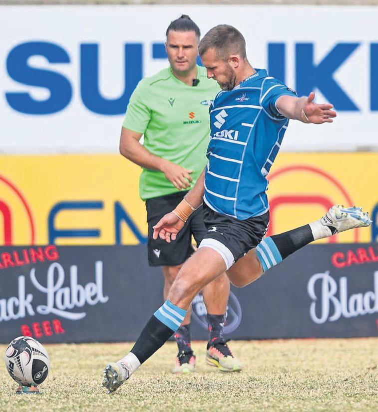 George Whitehead van die Griekwas tydens die wedstryd teen die Boland Kavaliers. Volgens sarugby.co.za is Whitehead derde op die lys van top-puntemakers in vanjaar se Curriebeker-reeks. Foto: Griekwas