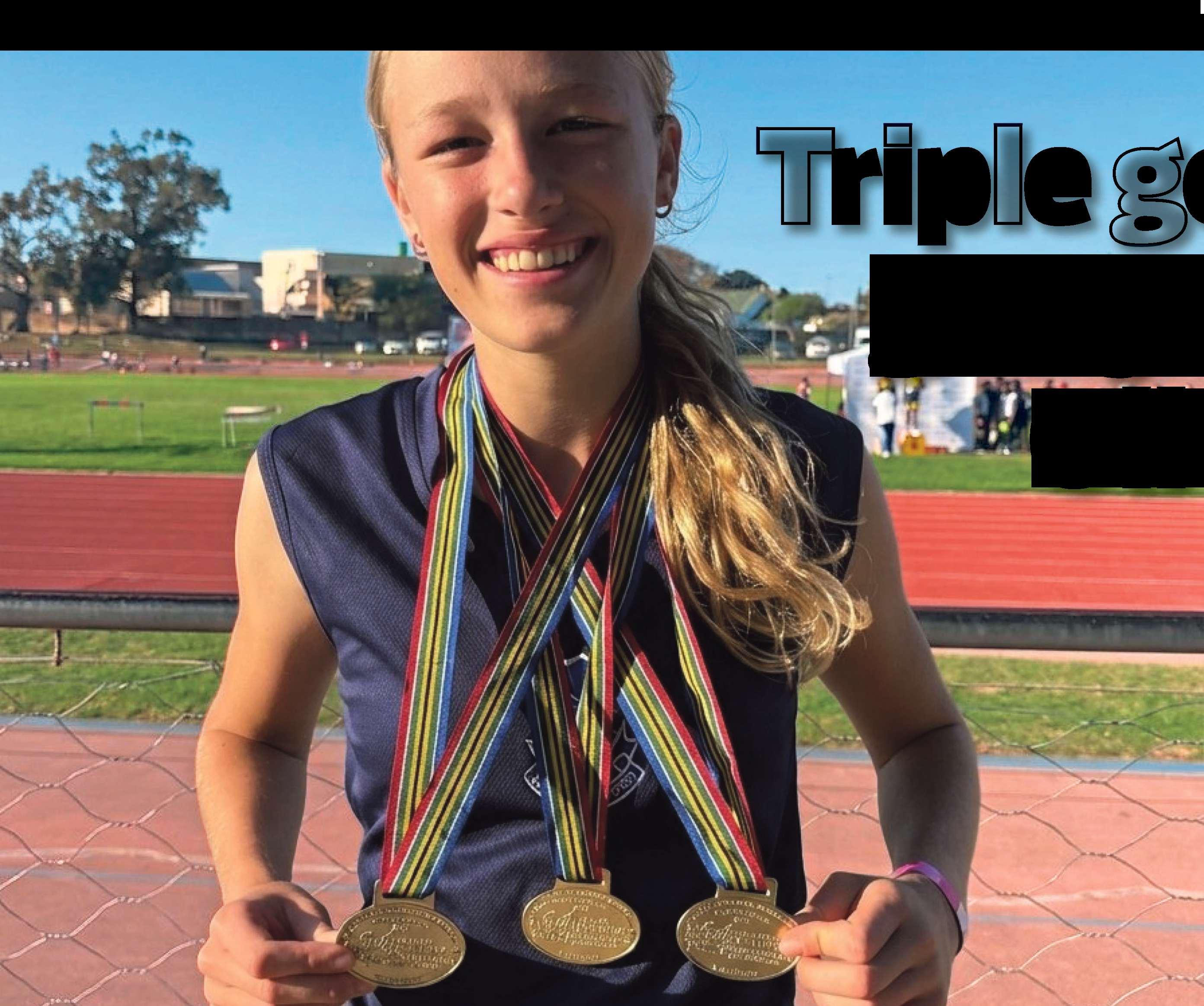 TheodorHerzl High School athlete, Olivia Mukheibir,competed in the recentMetro Athletics Championships. Olivia attained gold medals forgirls’ u/14 in the 100m, 200m and high jump items.Olivia has also made the inter-schools metroteam, the only female athlete qualifying forthree events. Sheplaced first in all, medalling gold. Her performance has seen her advance to the EasternCape Championships.