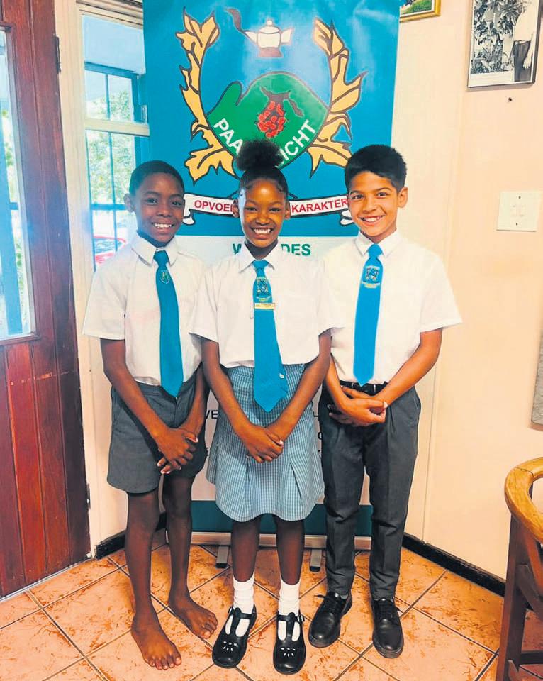 Baie gelukaan hierdie drie atletevan Paarlzicht Primêr watamptelik ingesluit is by die Boland- atletiekspan wat7Maart aan die Wes-Kaap Kampioenskap gaan deelneem te Stellenboschbydie Coetzenburg-stadion.Die skool is ongelooflik trots op die atleteseprestasie en wens hulleallesterkte toe. VanlinksisGraham Foreman, Jeniquelyn Lawranceand Uthmaan Adams