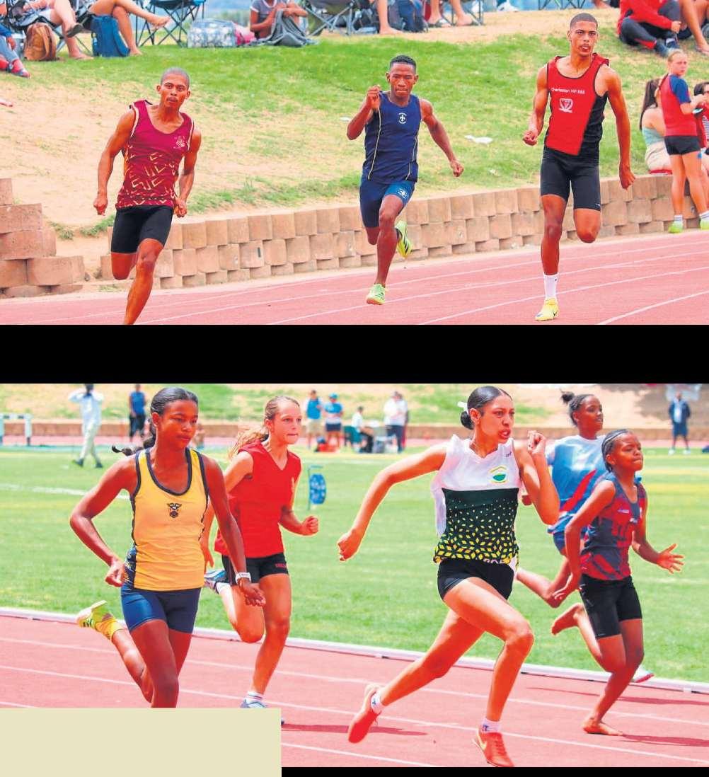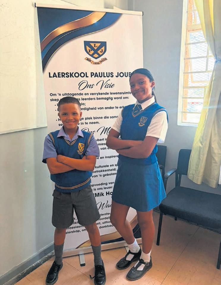 Twee atletevan die Laerskool Paulus Joubertwat by die Boland-kampioenskap geskitterhet,sal Saterdagindie Wes-Kaap-kampioenskapinCoetzenburg in Stellenboschmeeding. Bo is Xavier Sauls(o.11) wat’ngoue medalje in die 80 m, ’n silwer medalje in die 100 menbrons in verspring verwerfhet,terwyl Saskia La Douce(o.12)silwerinverspring, vierde plek in die 100 menbrons in die 150 mbehaal het