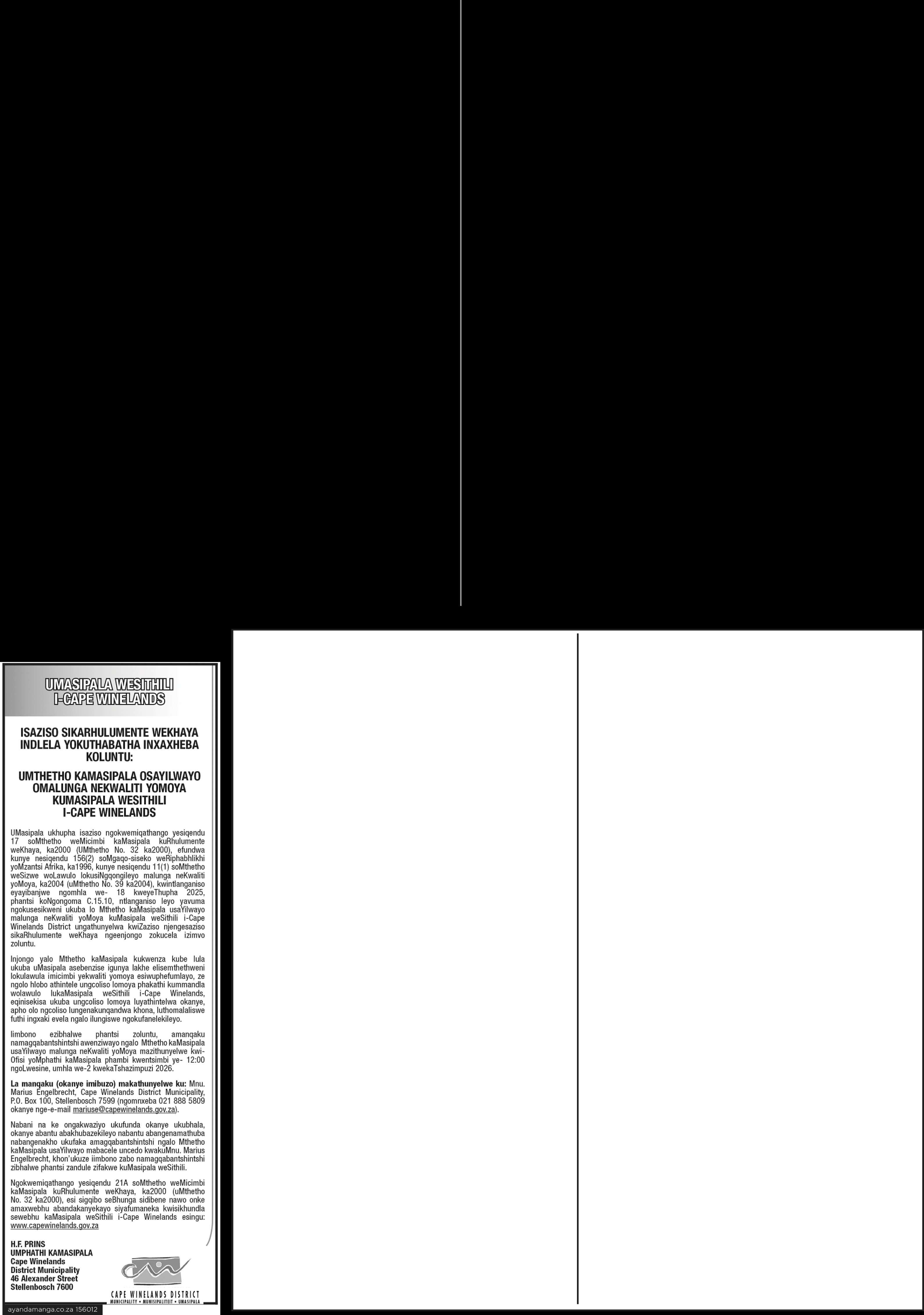 DR JH LEIBBRANDT CITY MANAGER PaarlPost– 05/03/2026 Provincial Gaze�e– 06/03/2026