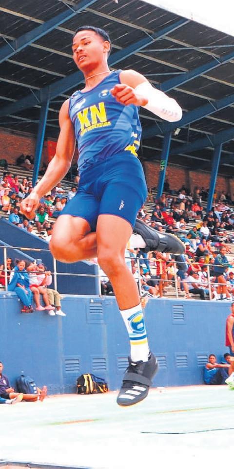 Hoog en baie ver–LiamCupido vanKlein Nederburg Sekonder is die Bolandkampioen in die o.17seuns-verspring nadat hy sy teenstandersmet gemak uitgestof het.