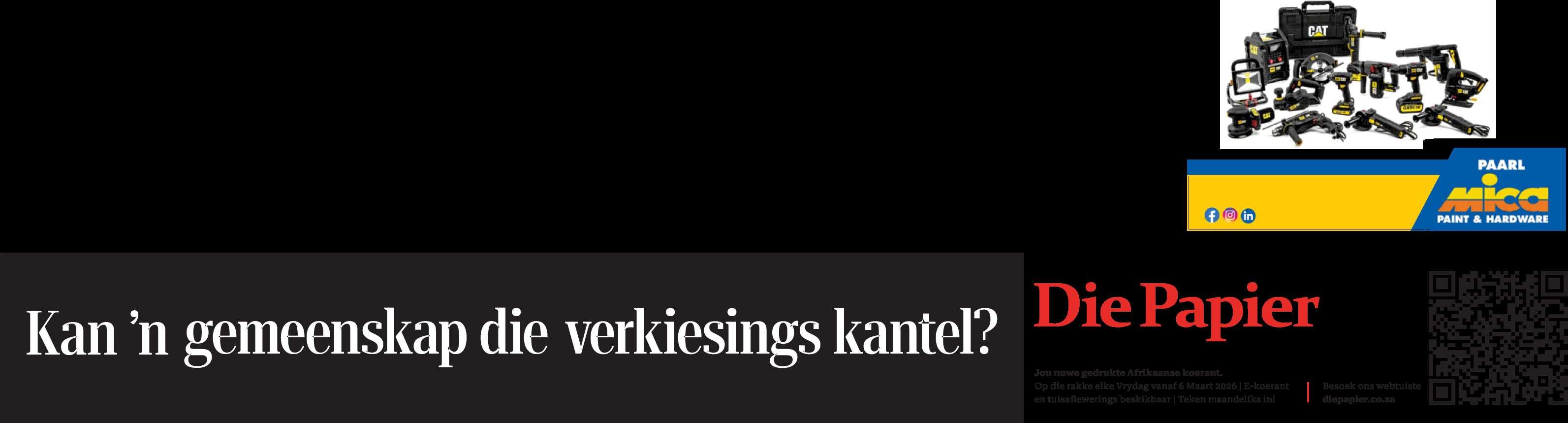 Ou Meulteater in die Paarl, Lionel en Anél Maharajah,die tuig eindeJanuarie 2025 neergelê het nadat hulle as bestuurders bedankhet weens skynbaar uitdagende“politiekery”, is dieteater geslote. Johaar het bevestigdat diemunisipaliteit, sodra dieonderhoudswerkafgehandelis, ’n nuwe huurkontrakmet ’n nuwe huurder sal aangaan. Diebeoogde