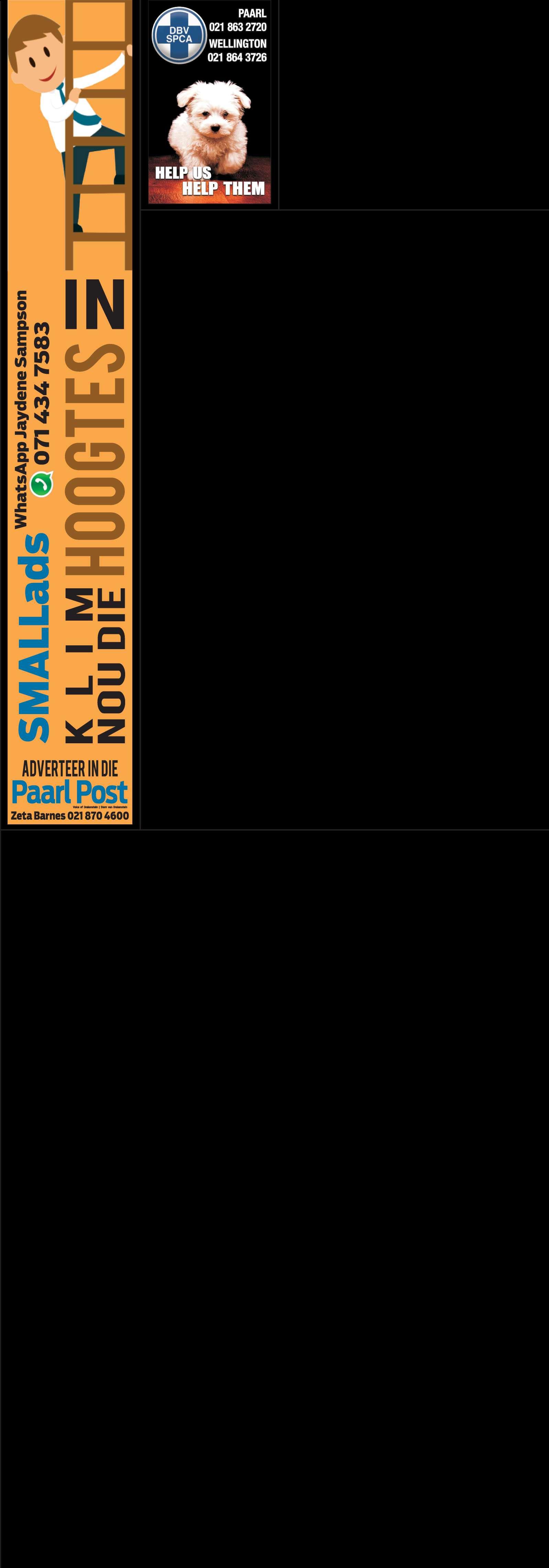 •Must reside in Wellington/Paarl area
