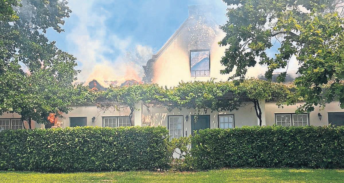 ’n Verwoestende brandhet in Desember verskeiegeboue op die Laborie-wynplaas in puin gelê. Argieffoto: Drakenstein-munisipaliteit