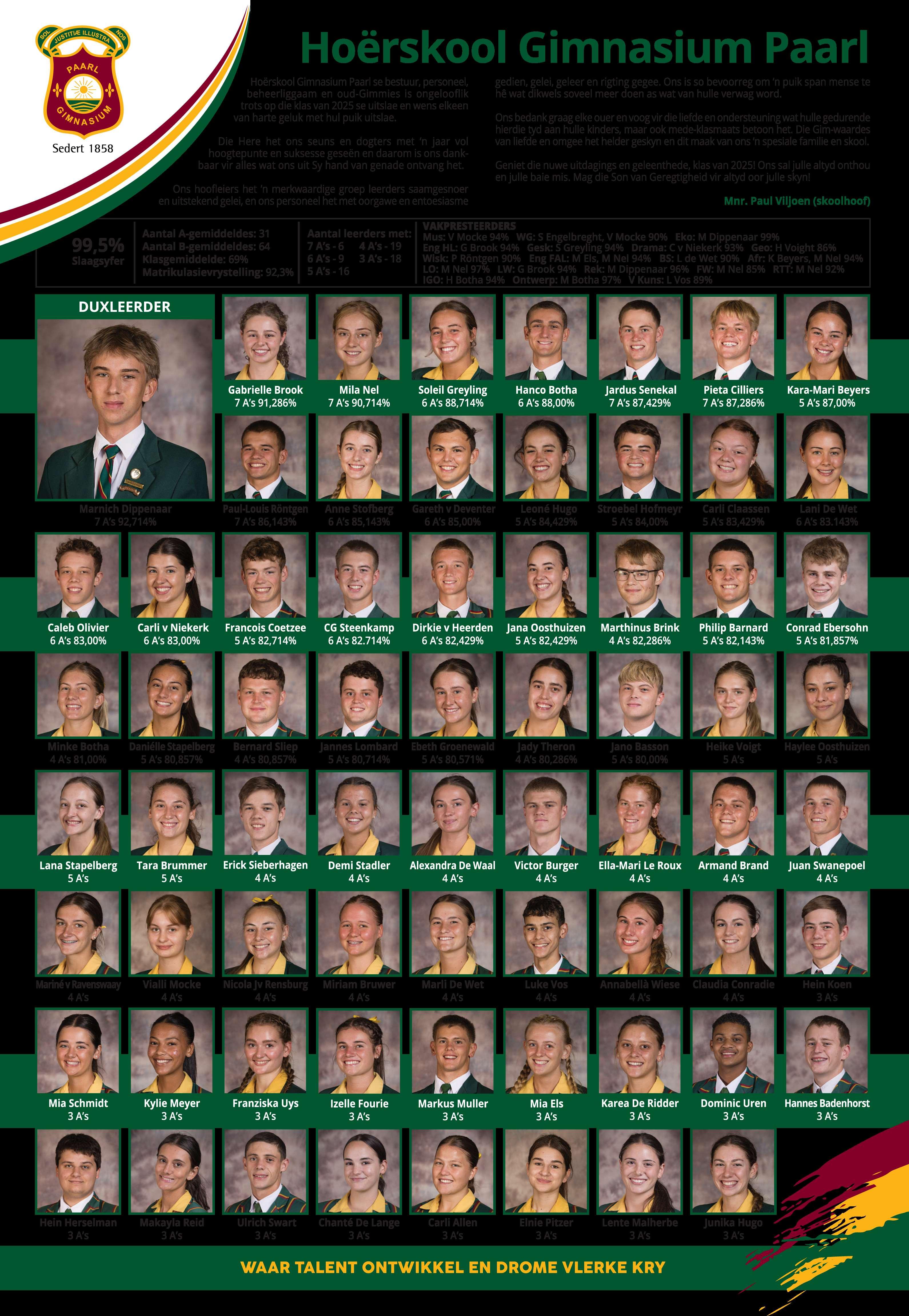 “Ons kandidate het die tweede hoogste onderskeidingsyfer in die land behaal,met 13234 kandidate wat in 2025 altesaam 31220 onderskeidings verwerf het.”