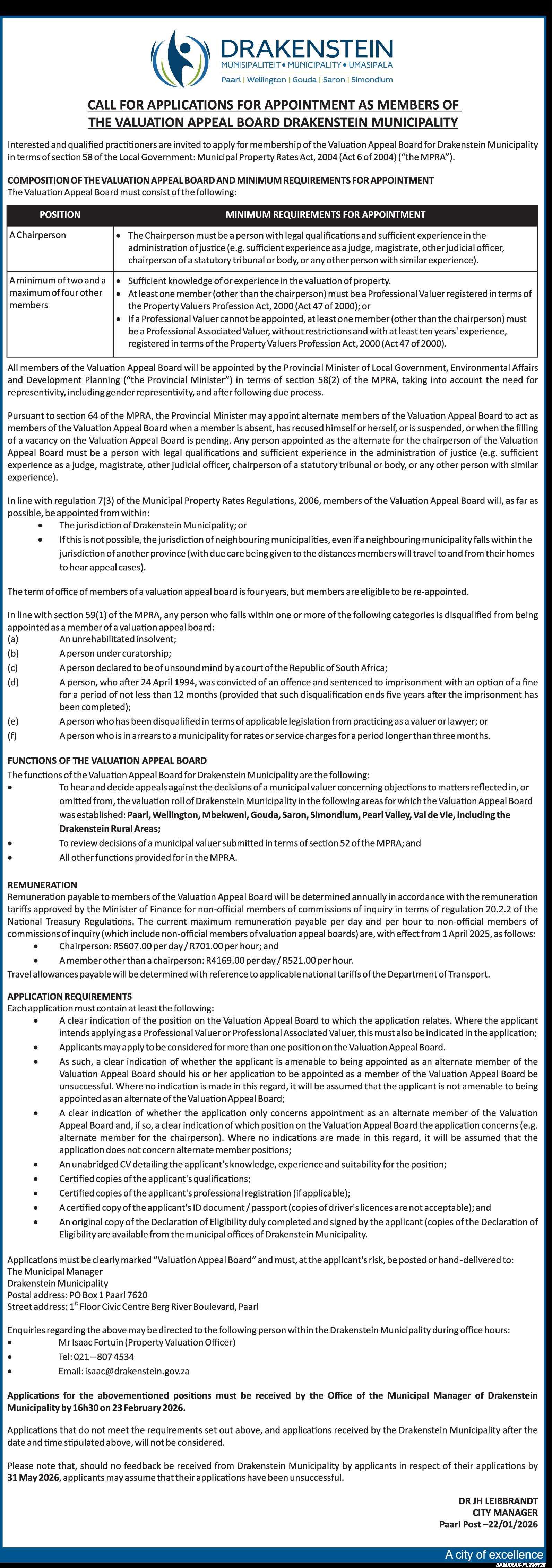 Seraj Johaar, Drakenstein se direkteur vir korporatiewe en beplanningsdienste, het terugvoer verskaf