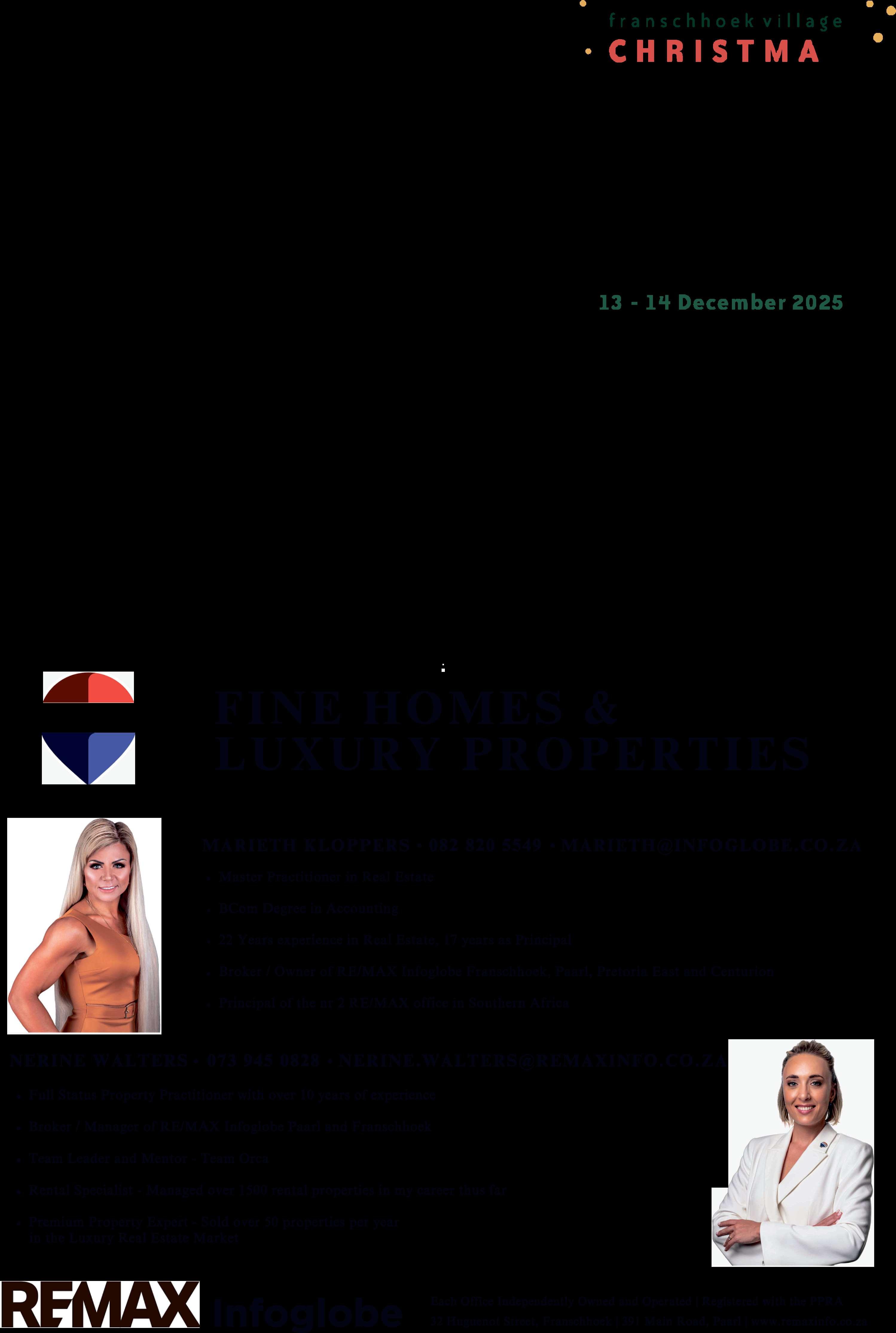 Hy is betrokke by die Greeff Christie’s International Real Estate-tak in die Paarl waar hy tans werk en sy kwalifikasie voltooi om ’n agent te word.