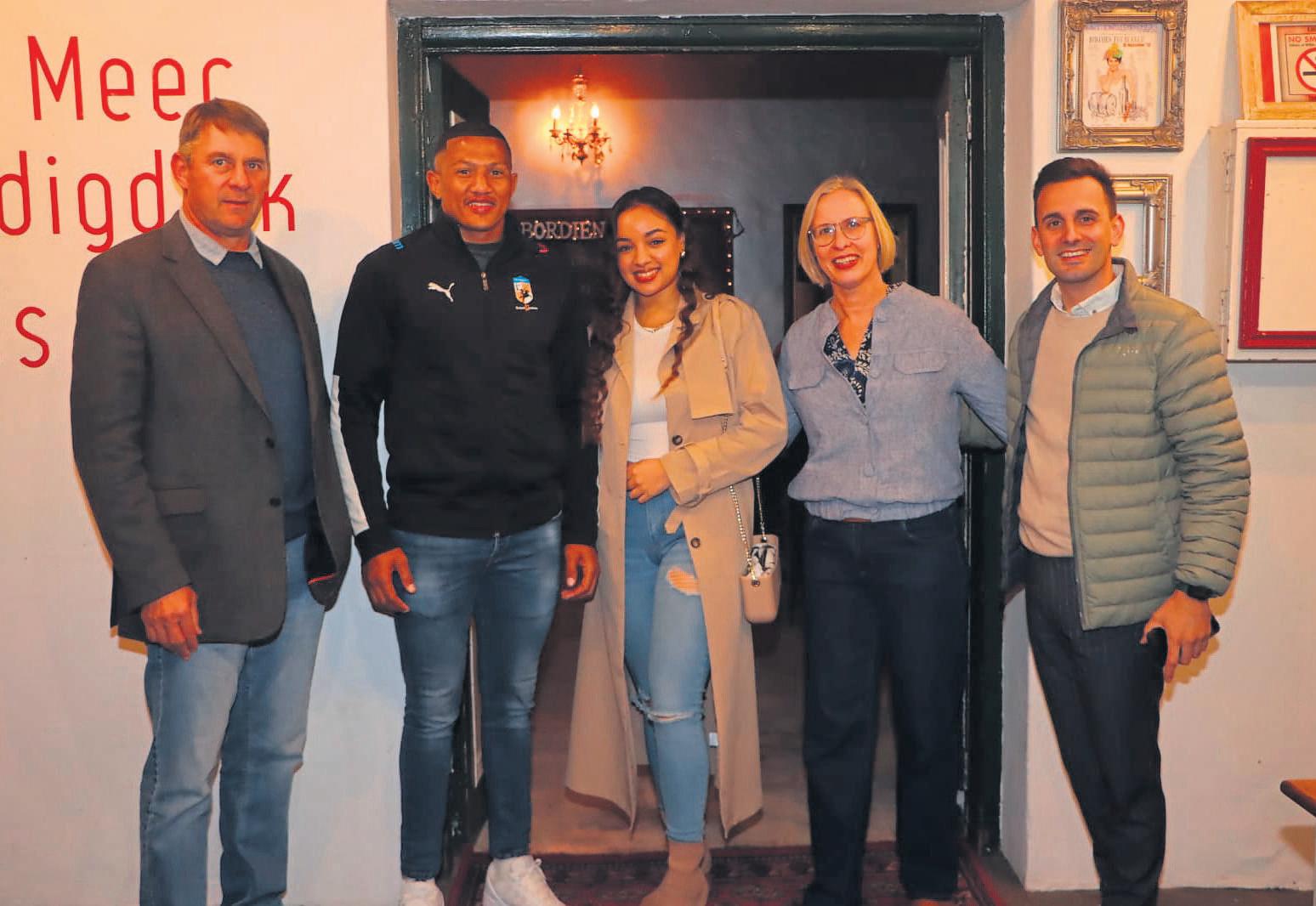 Rugby is deel van die kultuur van die Boland én Suid-Afrika Daarom was die Boland Kavaliers-span, wat vanjaar ná jare sy terugkeer tot die Curriebeker-kompetisie gemaak het, die fokus van die onlangse “Dis my ding, Wellington”-gespreksaand by die Breytenbachsentrum Kapt Thurlow Marsh (naaslinks) en die afrigter Hawies Fourie (links) het die gehoor ’n kykie agter die skerms van die span se werksaamhede en fokus gegee, en ook meer oor hul onderskeie loopbane vertel “Dis my ding, Wellington” is ’n gespreksreeks wat Wellingtonners wat ’n indruk maak in die kollig plaas. By Fourie en Marsh is, van links, Courtney Prince, Engela Duvenage (gespreksleier) en André Terblanché (bestuurder van die Breytenbach-sentrum) Foto: Ernest Killowan/Boland Rugby Media