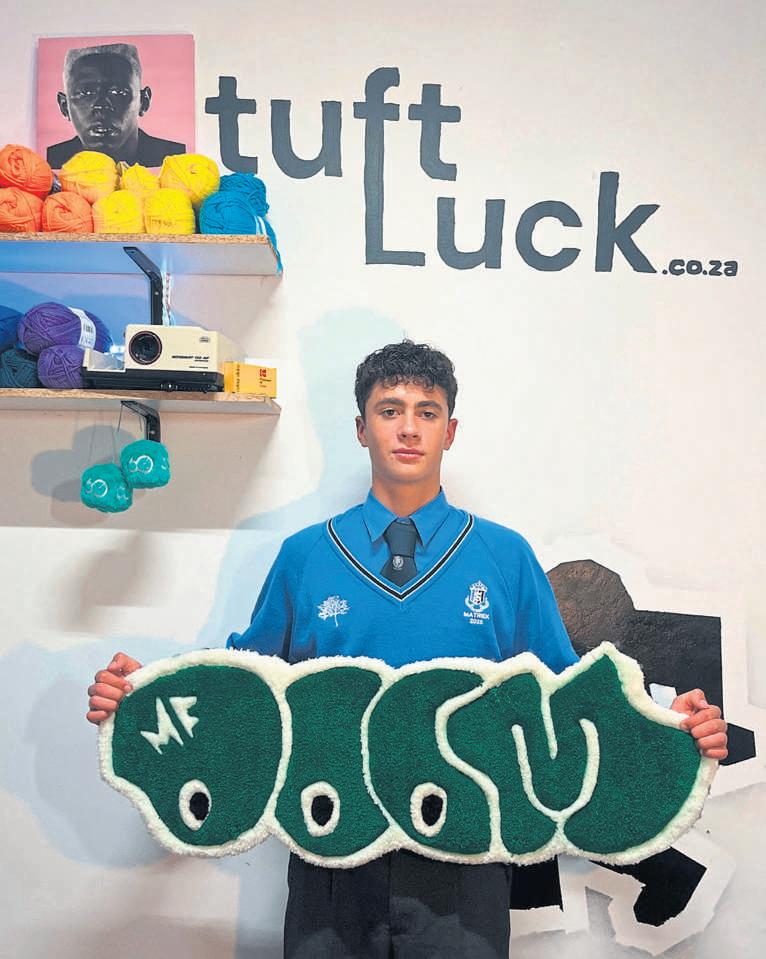 “Ek het al van jongs af besighede gehad. Toe ek in graad vyf was, het ek ’n popcorn-masjien gehad en by kermisse en skoolbyeenkomste springmielies verkoop. Met daardie geld het ek ’n 3D-drukker gekoop en vir mense selfooncovers, boemerangs, oorbelle en ander pasgemaakte items gemaak. Later het ek ’n hommeltuig gebou wat ek gebruik het om video’s vir mense te maak. Die tufting het ek op sosiale media gesien en gedink ek wil só ’n mat hê. Ek het toe besef daar is ’n geleentheid om ’n cool besigheid te begin.