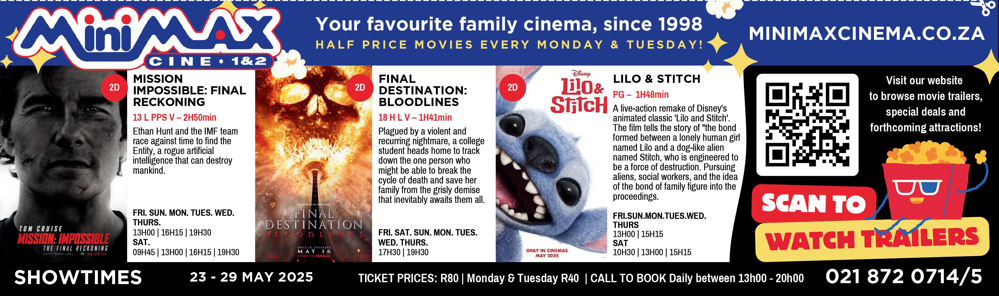 • Kaapstad-toerdatums: 29 Mei: Die Boerteater en restaurant, Durbanville (besoek www dieboer com vir kaartjies); 31 Mei: The Drama Factory, Strand (besoek www dramafactory co za vir kaartjies); 1 Junie: Drostdy Teater, Stellenbosch (besoek www drostdyteater co za vir kaartjies)