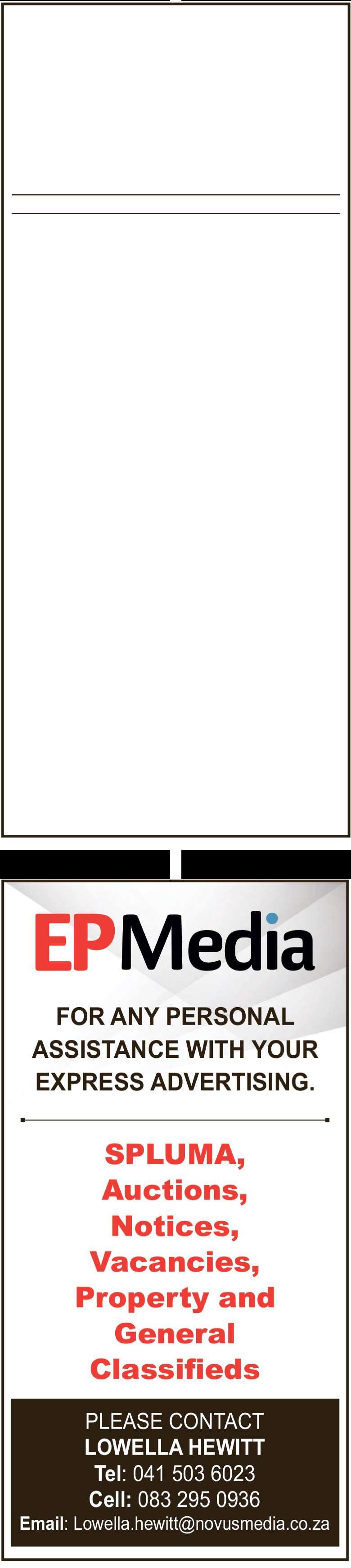 Persons with disabilities whoare not abletoe-mail, may contact Ayanda Nyaka at 3rdfloor, Lillian Diedericks Building,191 GovanMbekiAvenue, Gqeberha, tel. 041 506 2226.