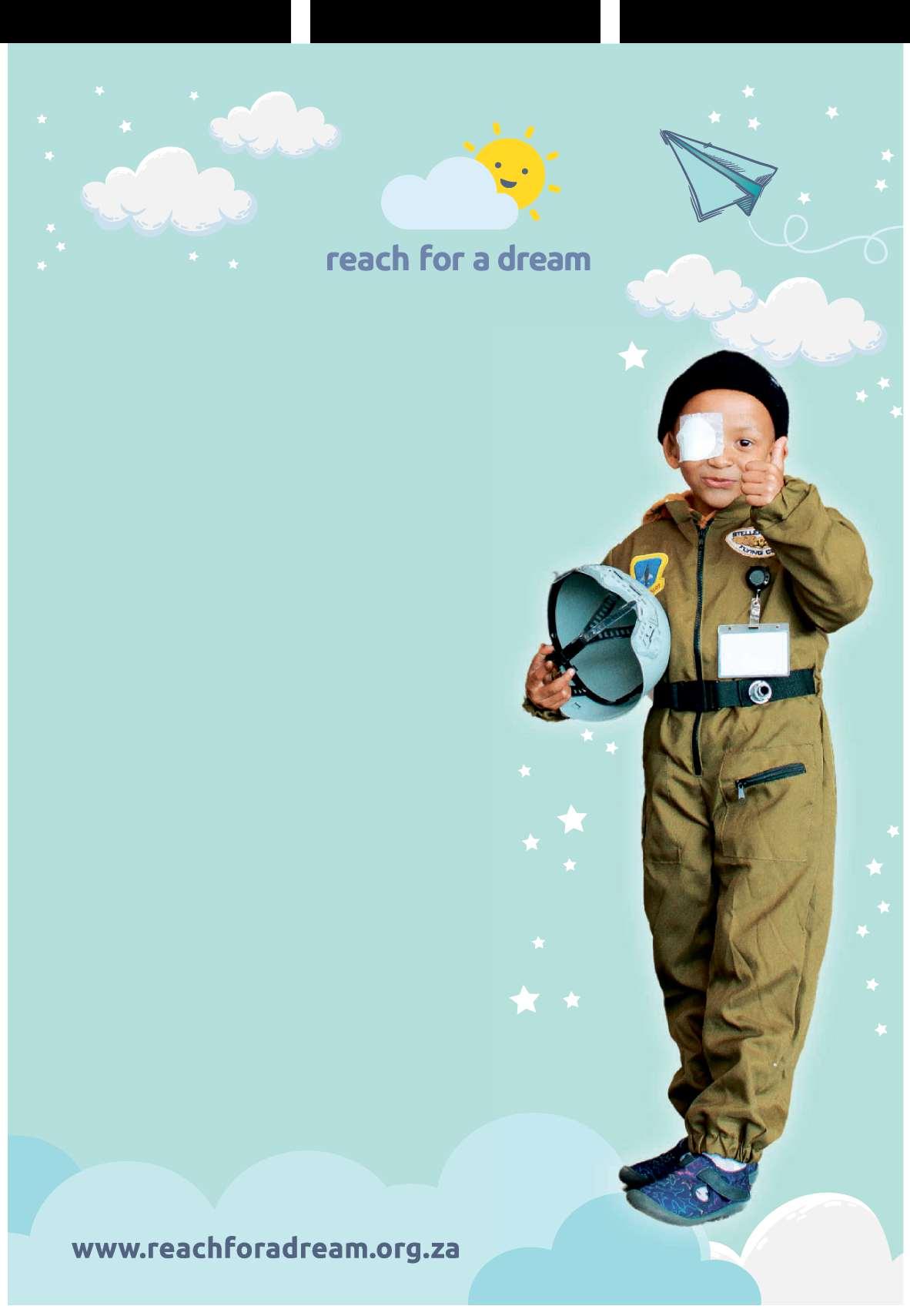 AtReachForAD ream ,w e’ve spent36 yearsturning thedream sofchildren facing life-threatening illnessesinto reality,helping6 young dreamers each daysee theirdream stake fl ight,no mattertheobstacles