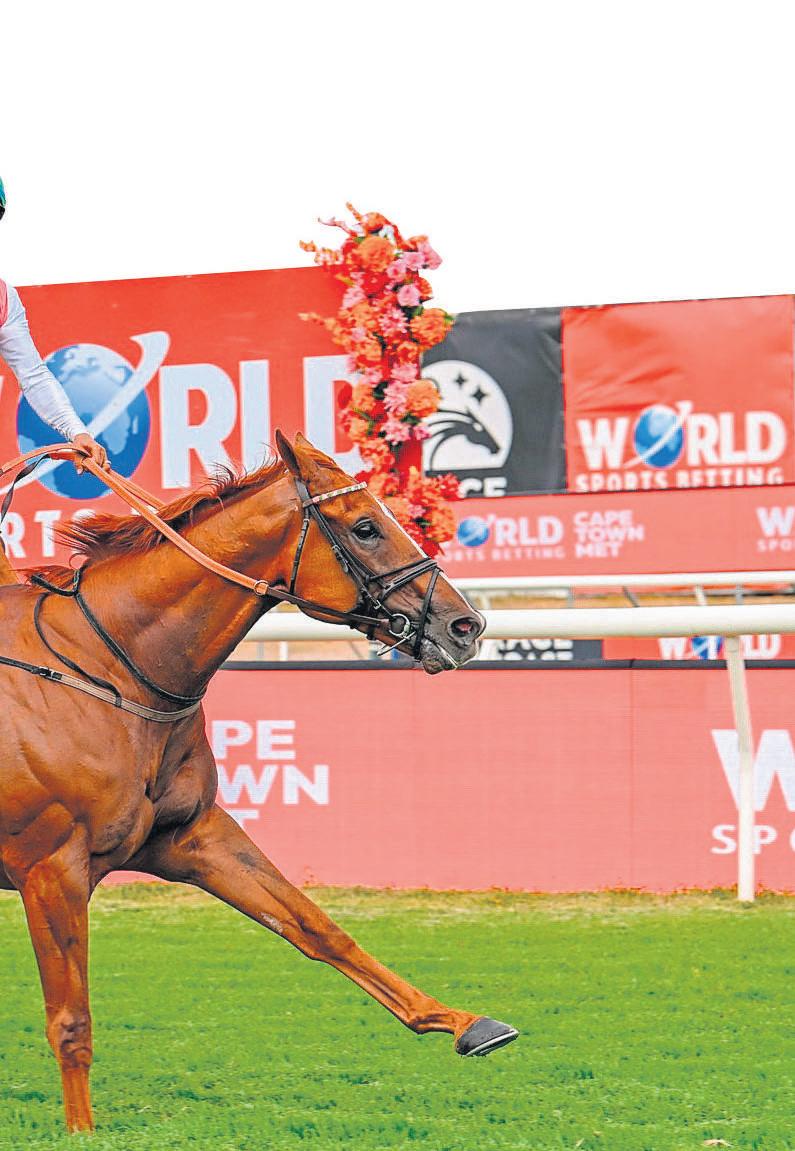 See It Again surgedhome to win theprestigiousWorld Sports Betting Cape Town Met Gr 1over2000m at the Kenilworth Racecourse on Saturday 31 January. Veteran jockey Andrew Fortune and trainer Justin Snaith completedaremarkable comeback after 454days without awin. Thecrowd at Kenilworth erupted as thefavouritestormed past rivals,claiming “Met