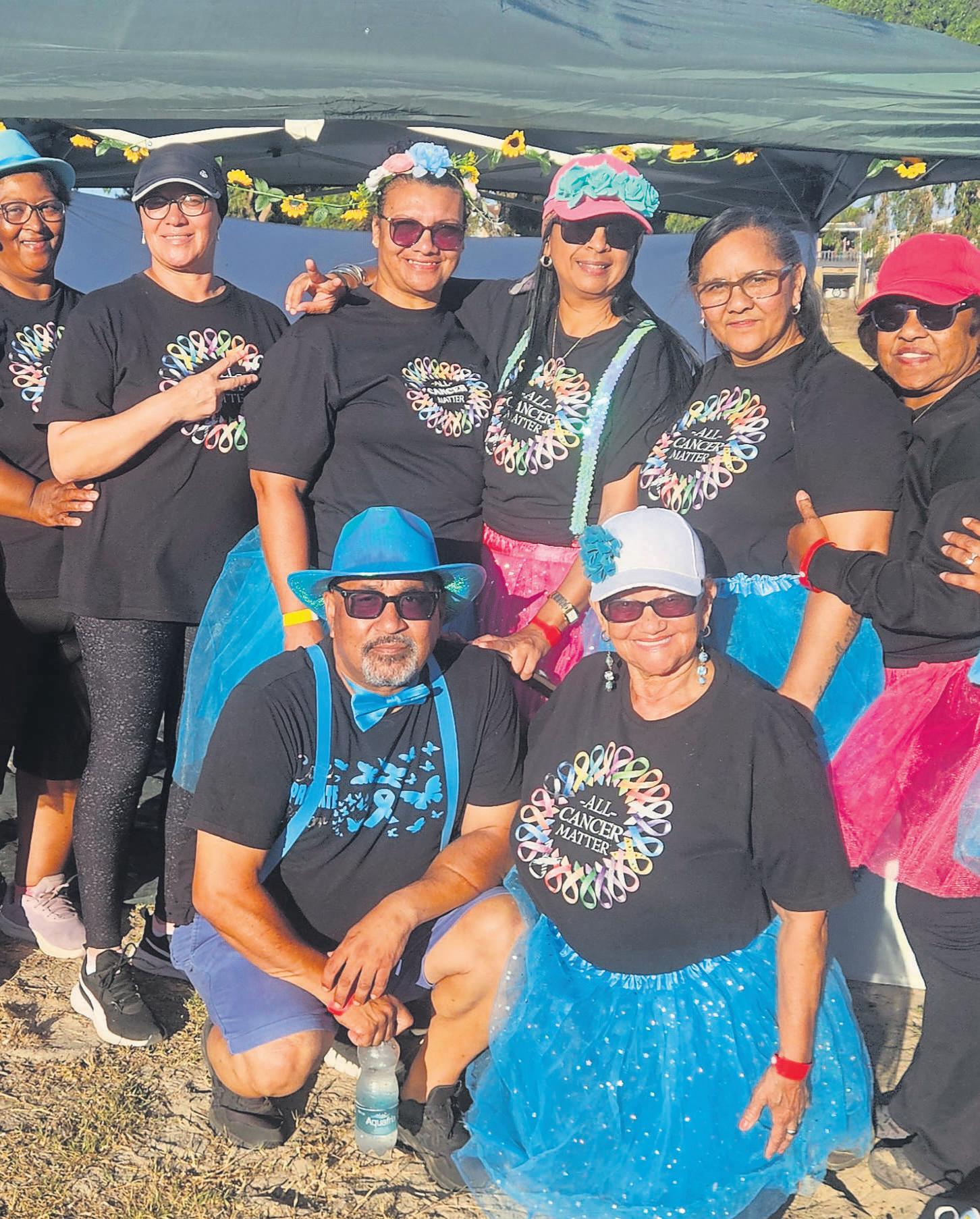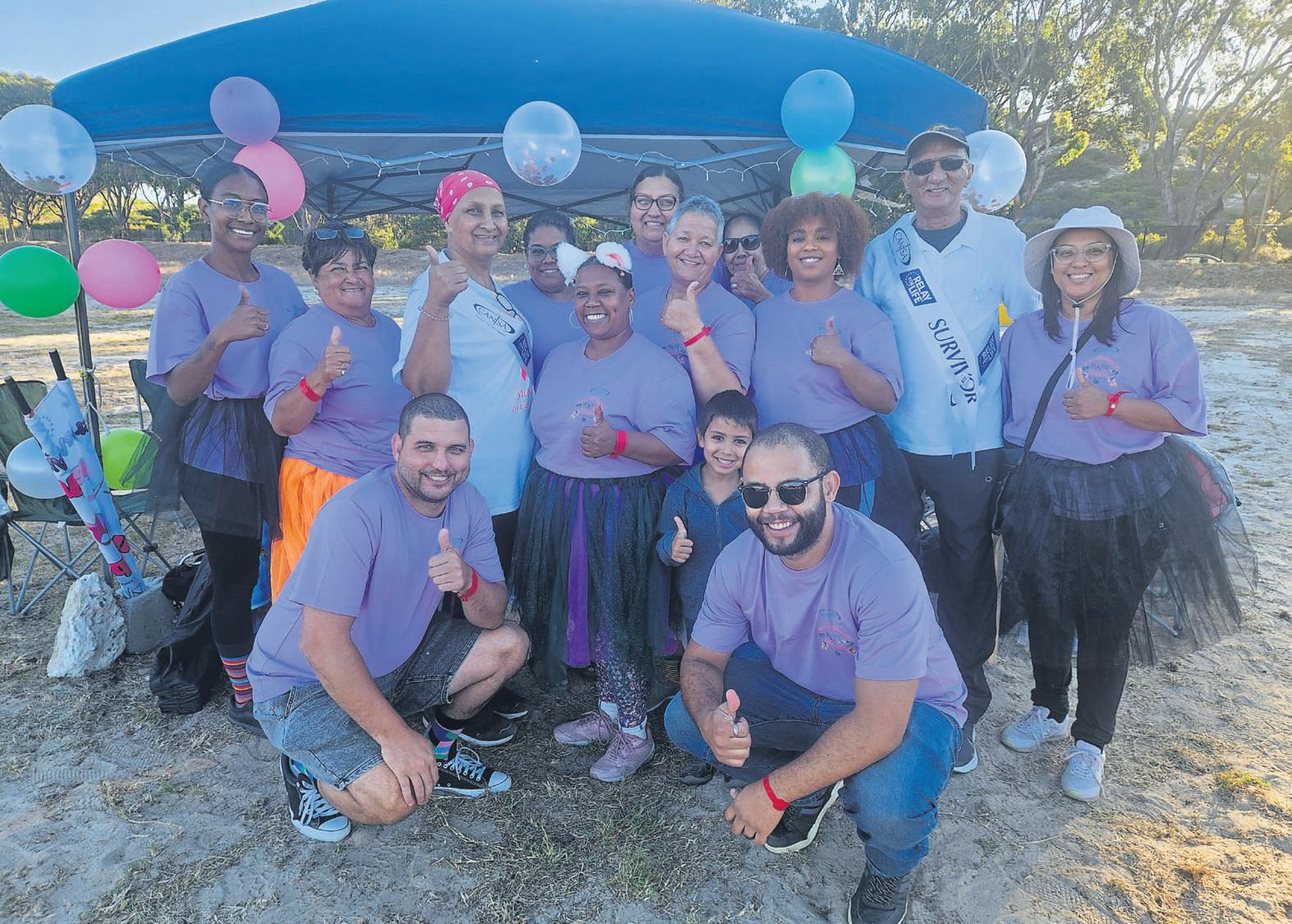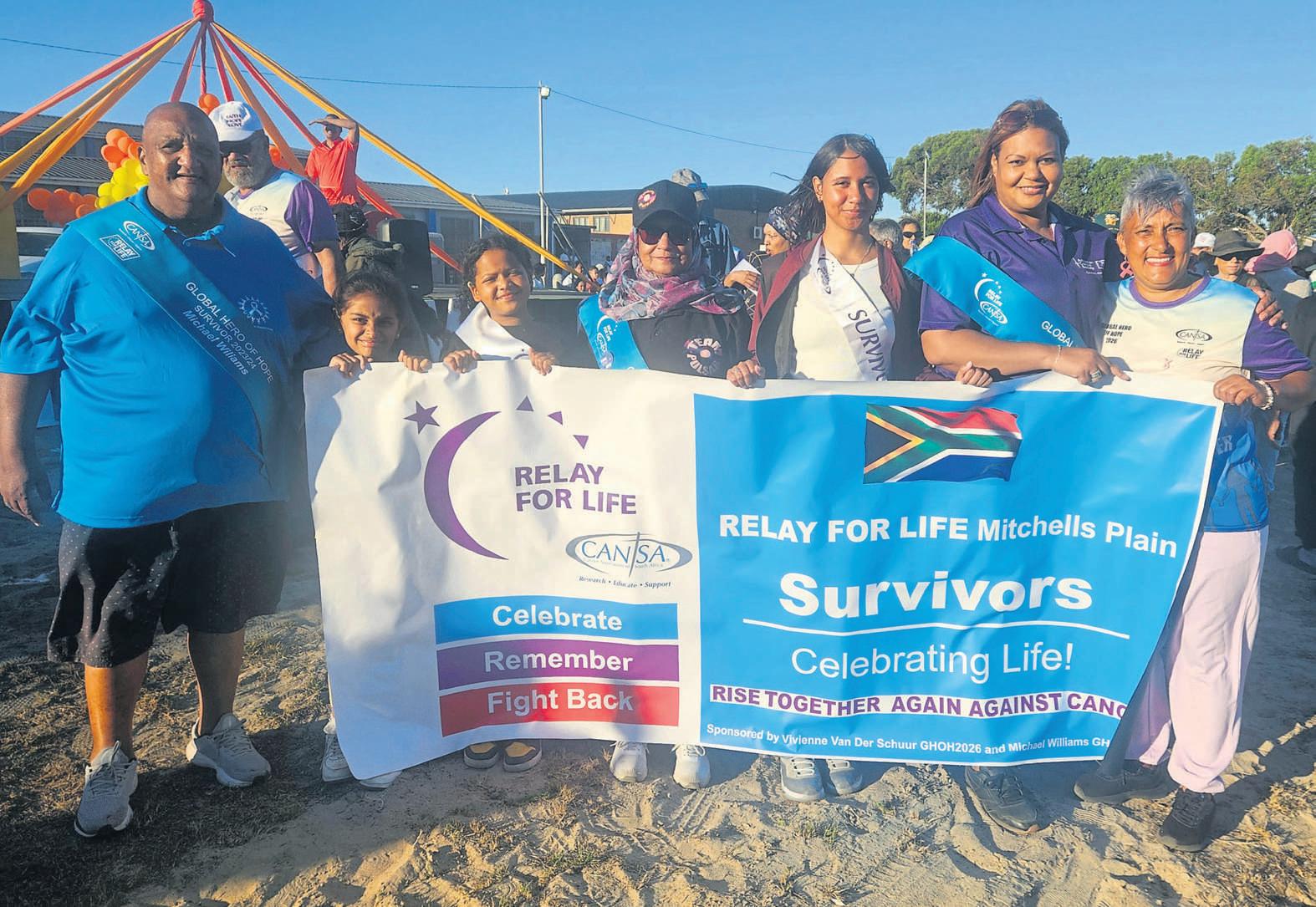 CansaRelay forlifeMitchells Plain(CRFLMP) heldits 12 hour fundraisng eventatWestridgeHigh School on Saturday 07 February.Leading theCANSAsurvivors lapofhonourare left,MichaelWilliams, Amarah Wilson, Debbie Baartman, AwaatiefFish, SkyDaniels, RobinLewis and Vivian vander Schuur the CRFLMP event chair. PHOTOS: RASHIED ISAACS