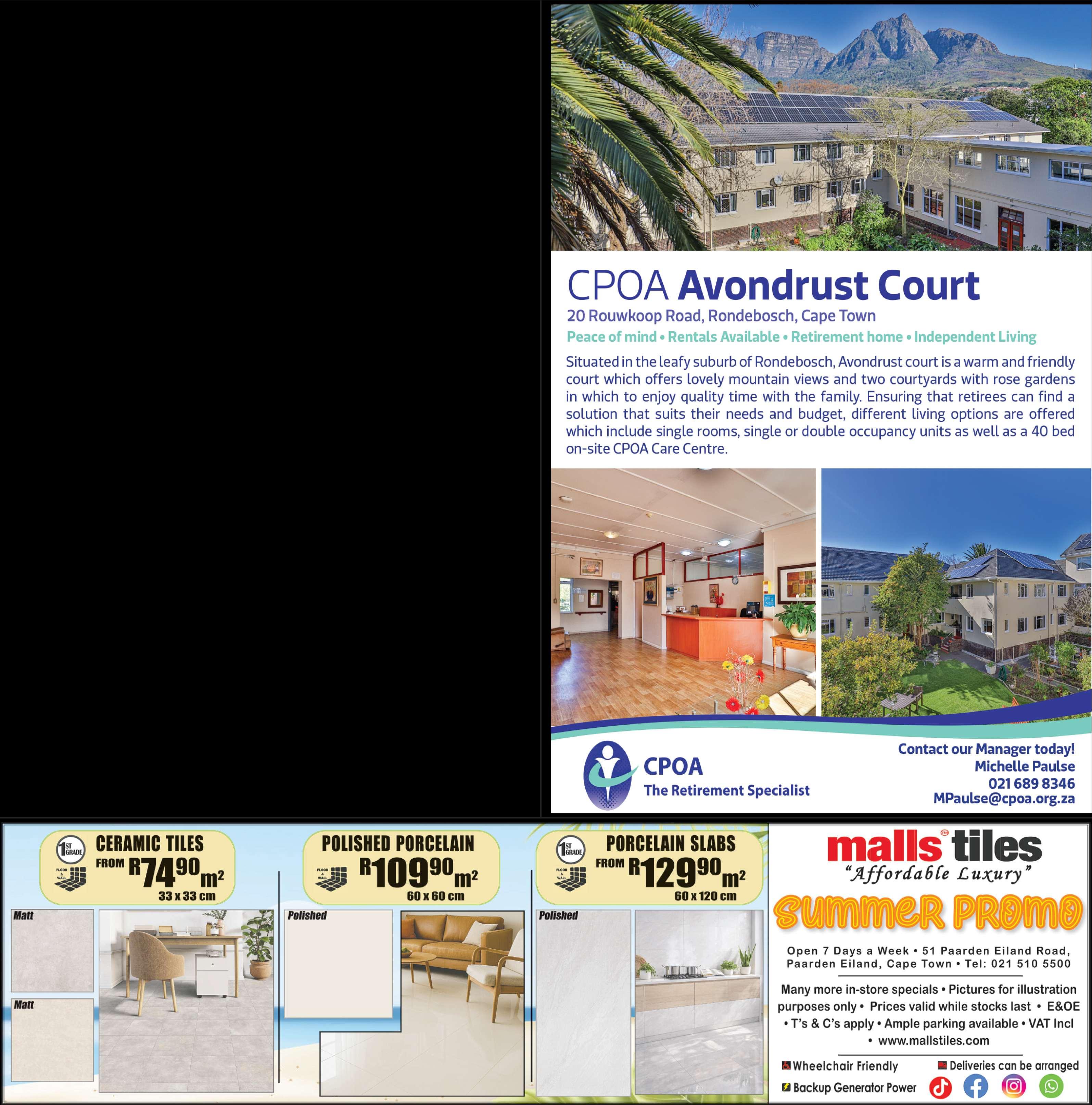 compla ed abou oise,safetyconce sand beingwoken in theearly hoursbyspeeding vehicles.“To be honest,I am also over being shockedawake by theirresponsiblebehaviour of afew individuals,”Langenhoven added. He urgedresidents to assist with data collection by reportingincidents as they occurtothe City’s Public EmergencyCommunication Centre on 021480 7700.
