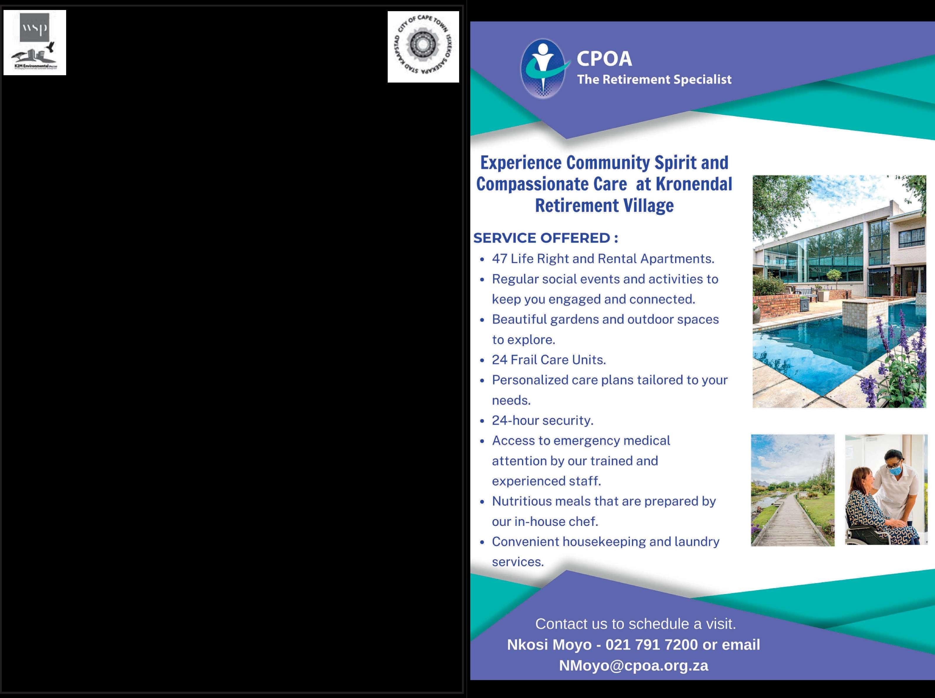 Project Location: The proposed roads traverse the following properties: Erf 87176 and Erf 94398 (owned by PRASA); Remainder of Erf 87374, Erf 87273 Erf85352,Erf87177,Erf16396,Erf163497,andRemainderofErf87402(allwithintheCityofCapeTown);RemainderofErf1891(ownedby Shearwater Homes Pty Ltd, Capricorn Beach Joint Venture, andAlloverprops Pty Ltd); Remainder of Erf 86265 (owned by Kruyer David and Barnett Bobbie); Remainder of Erf 86656 (owned by Village Lane Inv CC); and Remainder of Erf 86270 (owned by Colonial Orphan Chamber & Trust Co). ThesectionsoftheProposedRoadInfrastructureUpgradeextendapproximately2.90kilometresandareal situatedintheMuizenbergarea.
